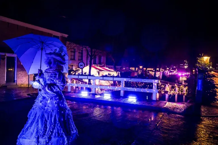 De Midstraat in Joure staat in winters licht met ledverlichte bomen, vuurkorven en een gezellige markt. Bezoekers vinden er cadeaus, kleding en winterse producten. De foodtrucks en restaurantjes zorgen voor koek en zopie, glühwein en warme chocolademelk. Een fijne middag om door de straat te lopen en iets moois mee te nemen.
