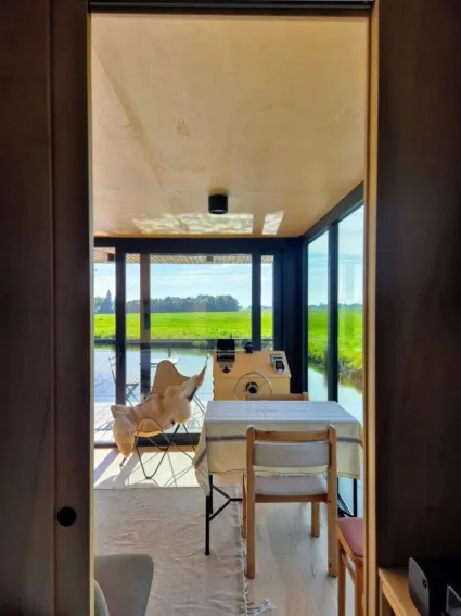 “ je eigen eiland, een varend huisje en verder helemaal niks. Behalve vogels, water, riet en misschien een nieuwsgierige reiger in de verte. ”