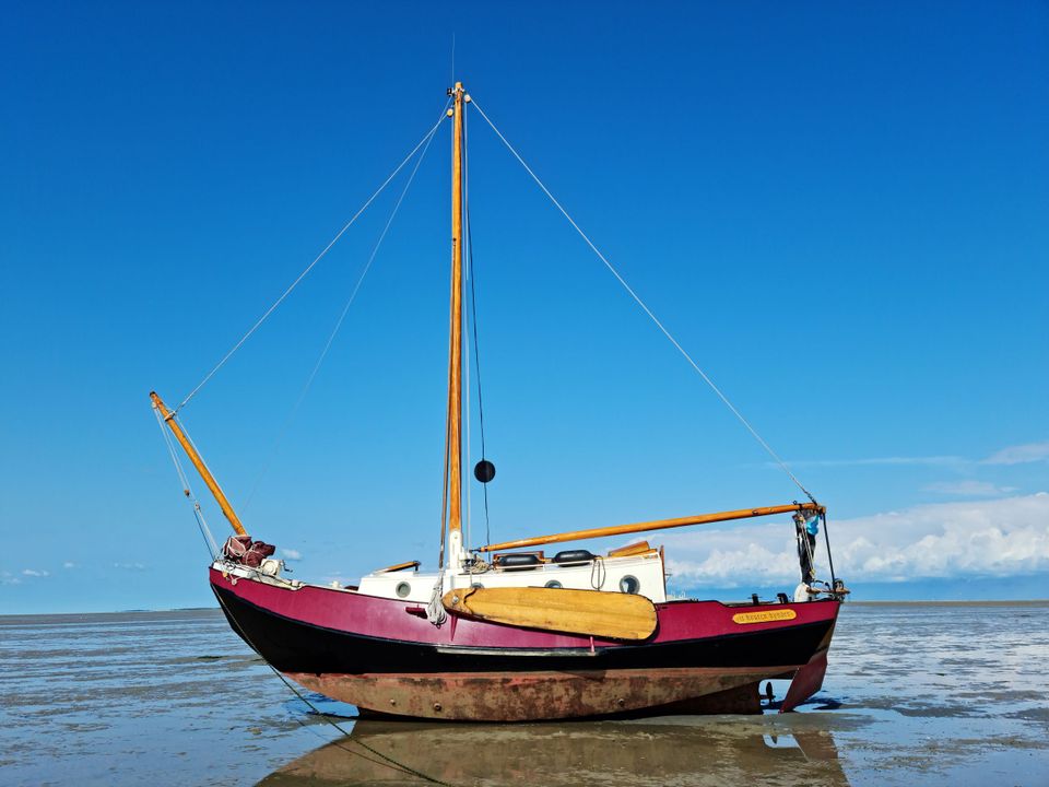 It houten Hynder is een Zeeschouw 920 van 9,20 m x 3,20 m en komt uit Joure, waar zij tezamen met haar zusterschip de Grutte Pier in 1970 te water is gelaten. Met een diepgang van slechts 60 cm is het een ideaal schip om mee droog te vallen op de Wadden, iets wat we bovenaan ons wensenlijstje hadden staan. Gelukkig konden we deze wens in vervulling laten gaan, want uiteindelijk was het perfect weer om droog te vallen. Ik deel graag onze ervaring met jullie via dit blog.