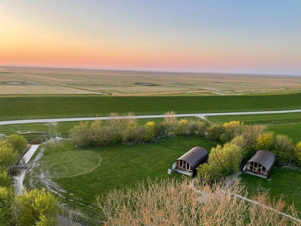 De schrijvershuisjes van Het Lage Noorden liggen op een bijzondere plek aan het Noarderleech. Vanaf de uitkijktoren kijk je uit over de Waddenkust. En als je het terrein afwandelt, stap je zo over de dijk de kwelder in: een populaire attractie voor vogels.