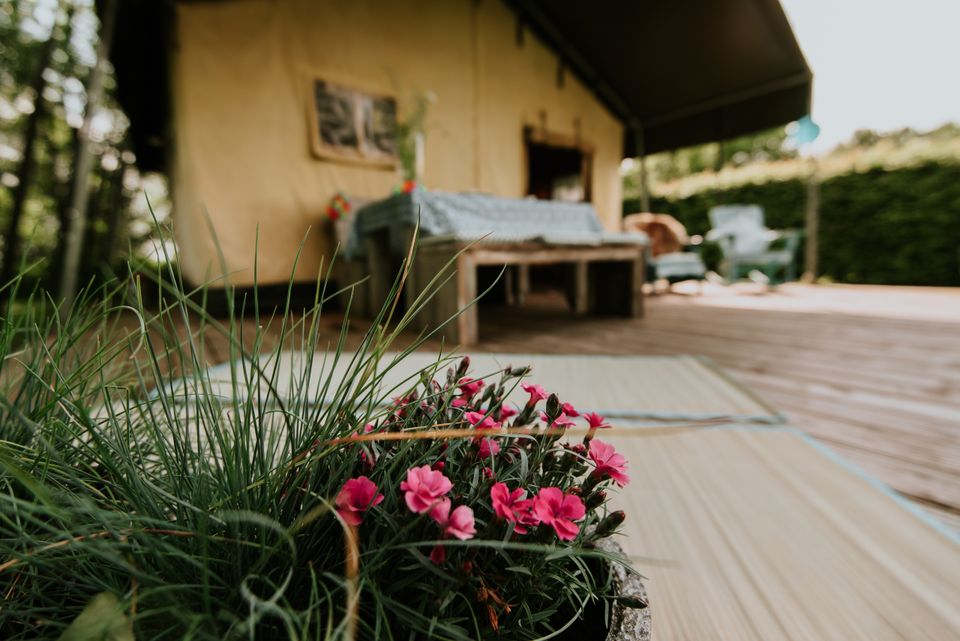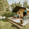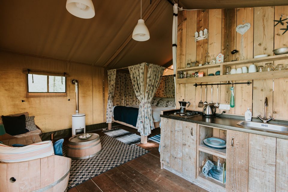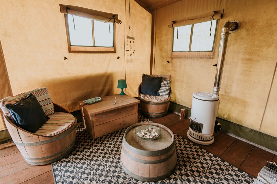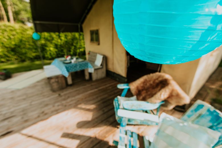 'On the Beach' is een prachtige tweepersoons safaritent. De tent is zo ingericht dat je helemaal in de sfeer raakt van het strand. Het voelt echt alsof je in een strandhuisje verblijft. On the Beach is voorzien van een tweepersoons hemelbed, een goede regendouche, apart toilet en een compleet ingerichte keuken. Als de avond fris is, kun je desnoods het warme gaskacheltje aanzetten. Er is ook een mooie veranda bij de tent waar je heerlijk van de zon kunt genieten en kunt dineren samen.
