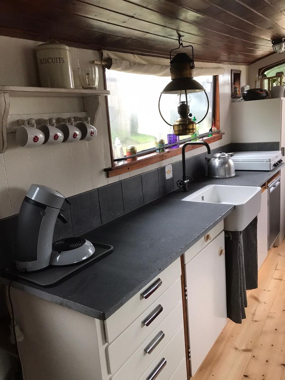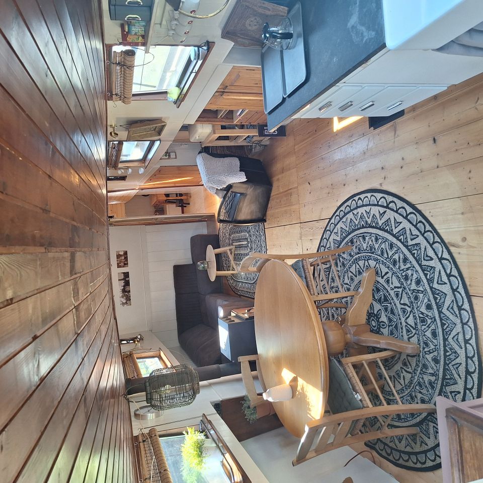 Als je binnenloopt is er een open leefruimte met een keuken, eetruimte en een zithoek met televisie. Als je verder doorloopt in de boot kom je uit bij de slaapplekken. Er is een slaapkamer met twee eenpersoonsbedden en een tweepersoonsbed. Aan boord heb je een kleine elektrisch toilet, tevens maak je gebruik van het haven sanitair (toilet & douche). Op het dek staan vier stoelen, een bijzettafeltje en er zijn twee fietsen aan boord die je kan gebruiken.