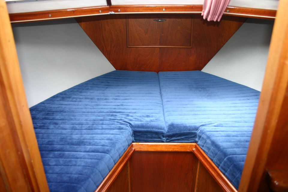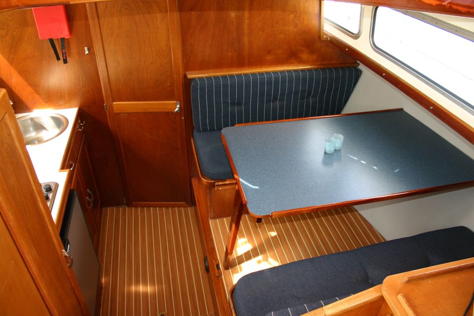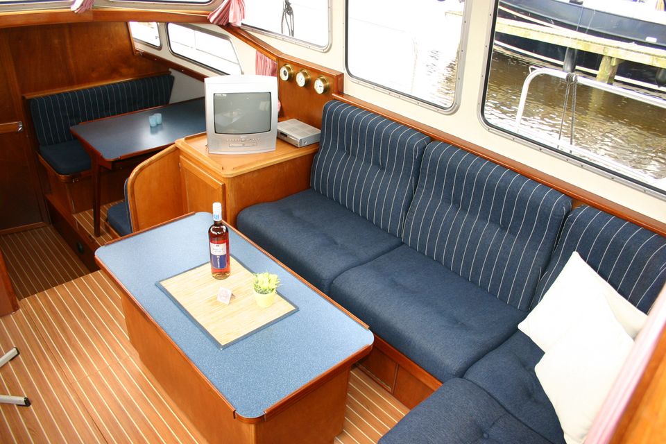 Indeling: Voorin vind je een afgesloten tweepersoonshut met bergruimte. De ruime keuken is uitgerust met een 4-pits kooktoestel, koelkast en een complete inventaris voor 6 personen. De dinette kan worden omgebouwd tot extra tweepersoons slaapplaats. In de salon is een gezellige zithoek en de stuurstand. In de achterkajuit bevindt zich een tweede tweepersoonshut met extra wastafel voor meer privacy, plus extra bergruimte. De boot beschikt daarnaast over een douche, elektrisch toilet en wastafel.