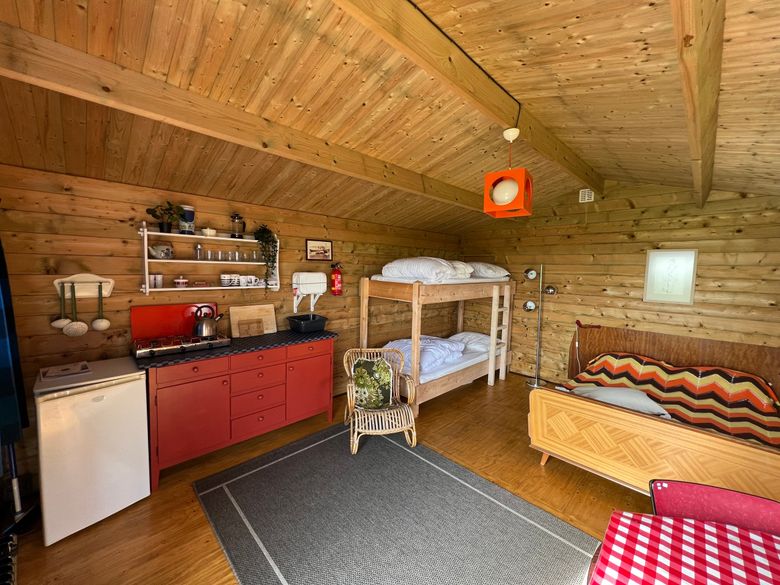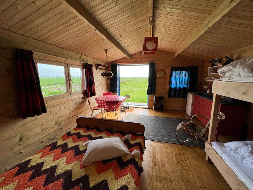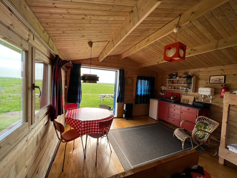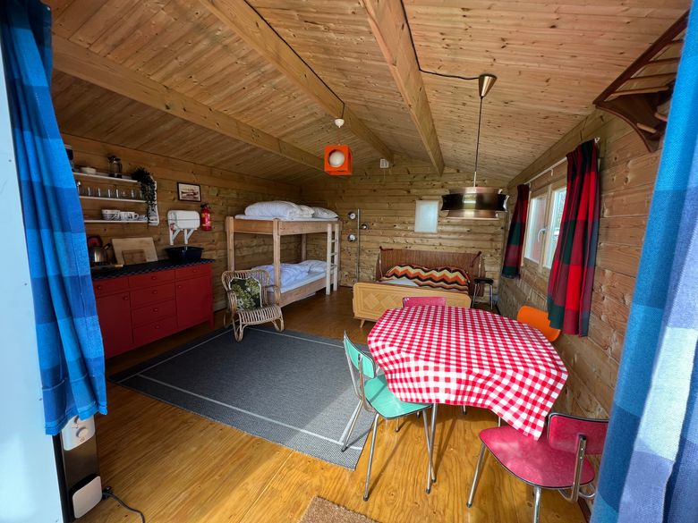 Deze knusse blokhut met dubbele openslaande deuren heeft een schitterend uitzicht over de weilanden. De blokhut is geschikt voor vier personen en beschikt over een stapelbed en een tweepersoonsbed. Daarnaast is er een tafel met vier stoelen en een keukentje met volledige inventaris voor vier personen, inclusief een gasfornuis en koelkastje! Je hebt een terrasje bij de hut met een houtkachel en picknicktafel. Er is geen sanitair in de blokhut, maar je kunt gebruik maken van het camping-sanitair.