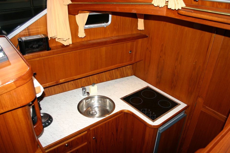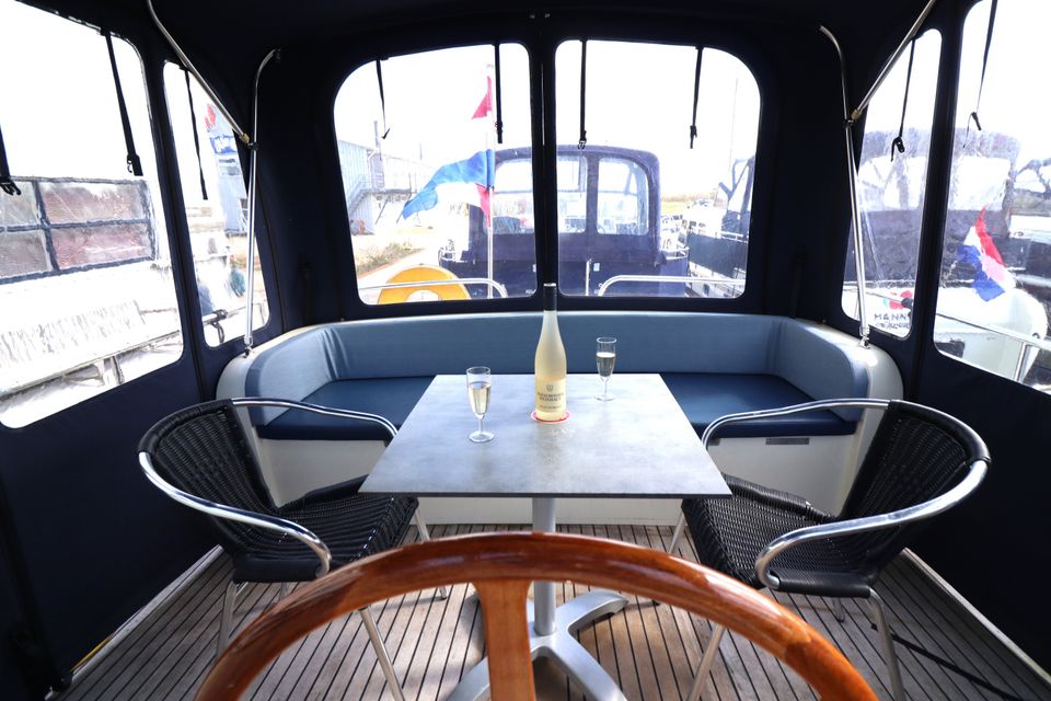 Dit klassiek gelijnde en degelijk gebouwde motorjacht biedt veel ruimte en comfort voor 4 personen. Dankzij de krachtige 106 PK Deutz-motor en de boeg- én hekschroef is het schip gemakkelijk te varen. Door de geringe diepgang kun je ook ondiepere wateren verkennen.