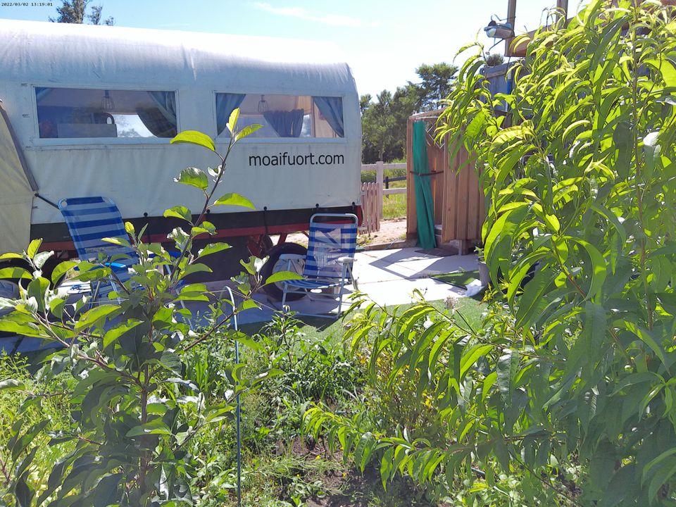 Op zoek naar een unieke overnachting? Wellicht is dan deze oude huifkar iets voor jou! De basic huifkar is gelegen in de natuur bij een paardenstal. De huifkar is geschikt voor twee personen en bestaat uit één ruimte. In deze ruimte is een gezellig zitje welke 's avonds eenvoudig omgebouwd kan worden tot een bed. Tevens is er een kleine kitchenette zonder gasfornuis met stromend water. I.v.m. de verzekering mag er niet gekookt worden. In de huifkar is eveneens een toiletje, douchen doe je bij de koude buitendouche. Buiten is ook een eco-toilet. Aangrenzend is de pluktuin. Hier kun je munt voor muntthee, kruiden etc. plukken. Via de tuin leid een trap je naar het dakterras waar je kunt genieten van een prachtig uitzicht over de weilanden. 's Ochtends vroeg zie je tijdens de zonsopgang vaak reeën en andere wilde dieren. Water komt uit eigen bron, maar is niet lekker om te drinken. Het beste neem je zelf flessen mee, maar water is eventueel ook te koop op de locatie. Deze accommodatie is te omschrijven als een trekkershut/natuurhuisje, maar dan met de luxe van elektra en een opgemaakt bed. Back to basic. Niet geschikt voor gasten met entomofobie of aversie tegen insecten.