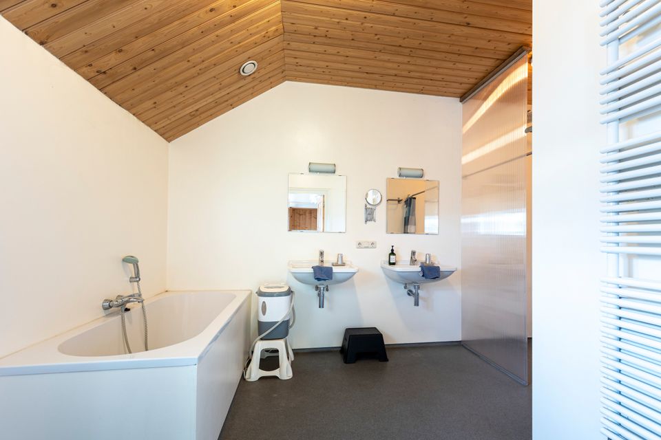 Aan het riviertje de Luts vind je deze ruime traditionele Friese stolpboerderij. Op een rustige plek kun je genieten met je familie of vrienden. Er is een royale woonkeuken met een grote eettafel. De keuken beschikt over moderne apparatuur, zoals onder andere een combi magnetron, afwasmachine, koelkast, vriezer en uiteraard voldoende keukeninventaris. In de voormalige melkkelder is de gezellige zitkamer gesitueerd met een royale hoekbank en meerdere comfortabele stoelen. Ook vind je de royale badkamer, voorzien van een heerlijk groot ligbad, een aparte douche en een dubbele wastafel en een apart toilet met urinoir op de benedenverdieping. Je gaat met 5 treden naar de opkamer waar je de eerste slaapkamer aantreft. Op de eerste verdieping zijn 4 slaapkamers met in elke kamer 2 eenpersoons boxspringbedden. In totaal zijn er 10 comfortabele boxspringbedden aanwezig. In een van de 4 slaapkamers op de eerste verdieping staat een stapelbed voor 2 extra personen. Hierdoor wordt er plek voor 12 personen geboden. Ook is er een tweede badkamer voorzien van een douche, toilet en een wastafel. Buiten heb je een royale tuin met terras tot je beschikking. Hier heb je de mogelijkheid om te barbecueën op het terras of zelfs een hottub te huren! Er is een groot speelveld met schommels en een grote trampoline voor de kinderen. Doordat het vakantiehuis ruim is opgezet, kun je ook met slecht weer heerlijk in deze accommodatie vertoeven. Dus: boeken en inpakken maar en op naar Ruigahuizen.
