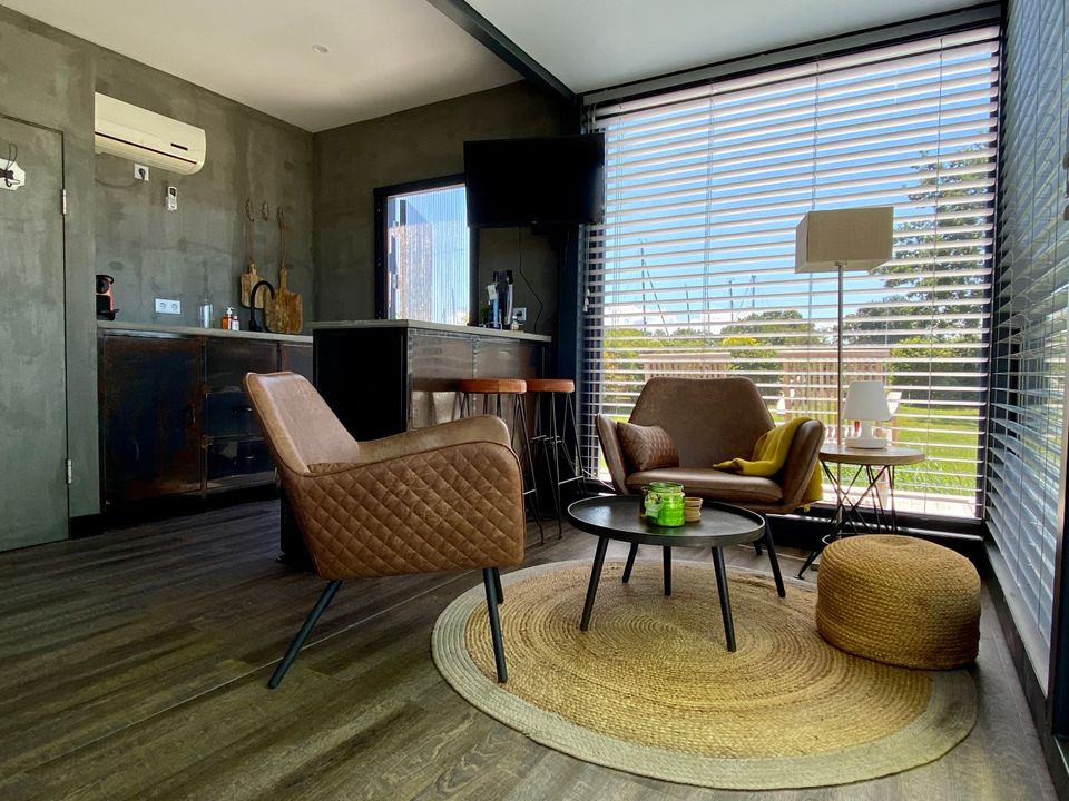 Overnachten in een omgebouwde zeecontainer op een prachtige locatie