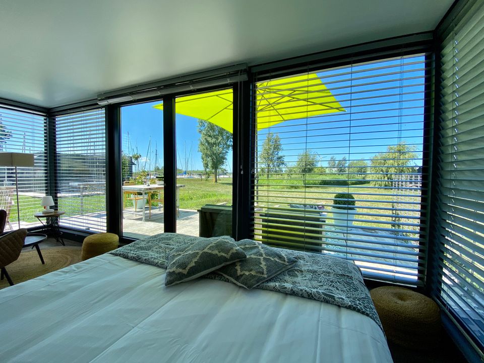 Deze knusse glamptainer - een voormalige zeecontainer - is perfect voor een romantisch verblijf voor twee! Wanneer je naar binnenstapt, overzie je meteen de gehele ruimte. Er staat een comfortabel kingsize bed, gezellig zitje met comfortabele stoelen en een kitchenette waar je gemakkelijk een kopje koffie of thee zet. De glamptainer heeft een eigen badkamer met douche, toilet en wastafel. Buiten is een terras waar je middels een parasol zelf kunt kiezen of je in de zon of de schaduw van de omgeving geniet.