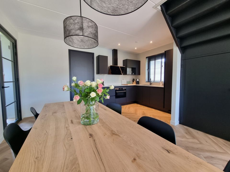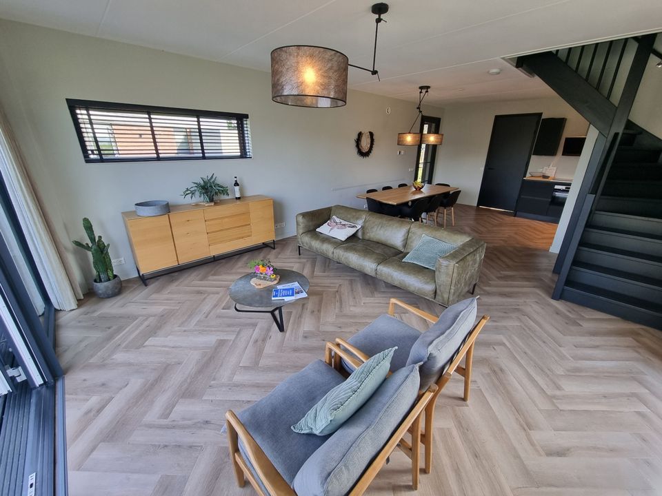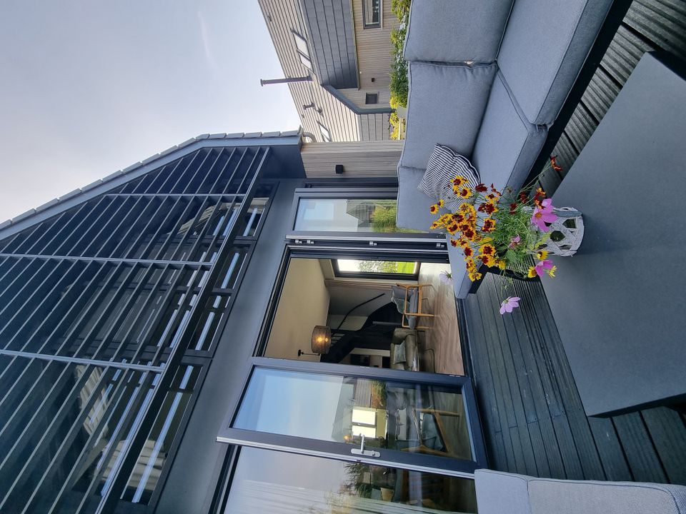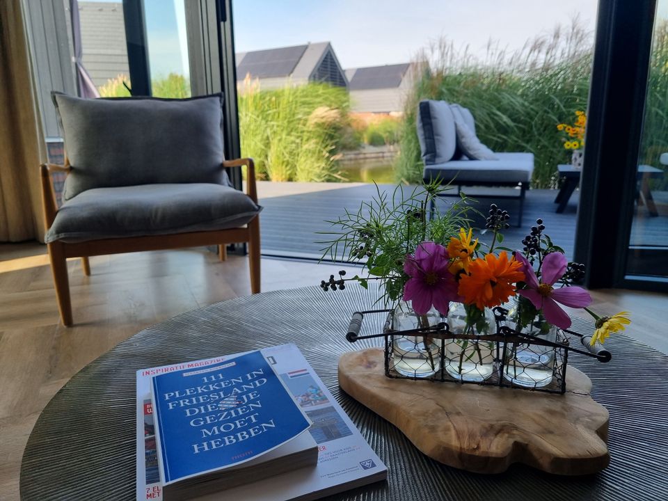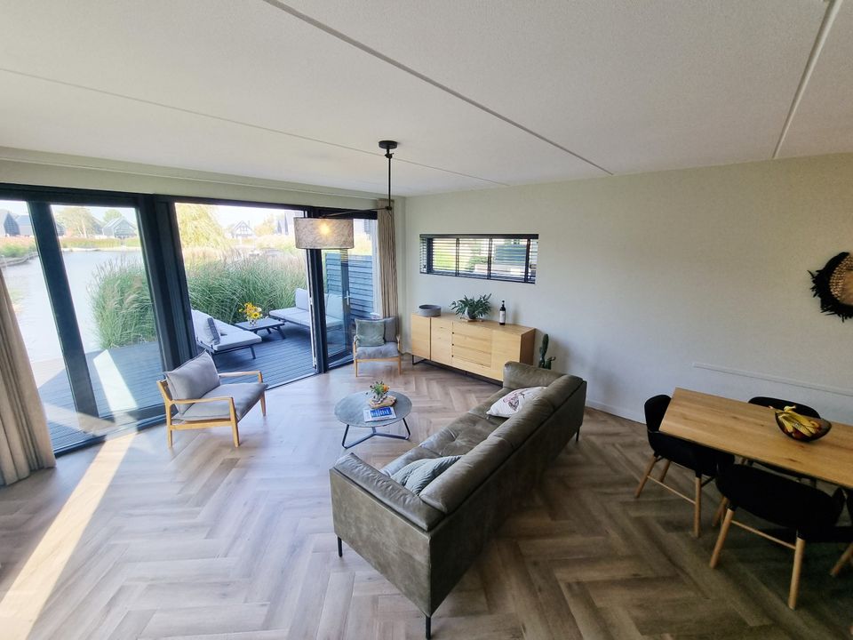 Deze villa ligt aan doorgaand vaarwater op een villapark. De woonkamer heeft een ruime woonkamer en open keuken. De sfeer van de woonkamer is knus en eigentijds, er staat een fijne bank en de openslaande deuren naar buiten geven een prachtig uitzicht. Doordat de keuken open is, is deze echt onderdeel van de woonkamer. De slaapkamer op de begane grond heeft een eigen badkamer ensuite, voorzien van een inloopdouche en aparte wastafel. Op de eerste etage zijn nog drie slaapkamers, twee van deze slaapkamers hebben twee eenpersoons boxspringbedden en de derde slaapkamer is wat kleiner en heeft een stapelbed. Op deze verdieping zijn ook nog eens twee badkamers en een apart toilet. De tuin en het terras grenzen aan het water waar je middels de eigen aanlegsteiger zo aan boord van je (gehuurde) boot stapt!