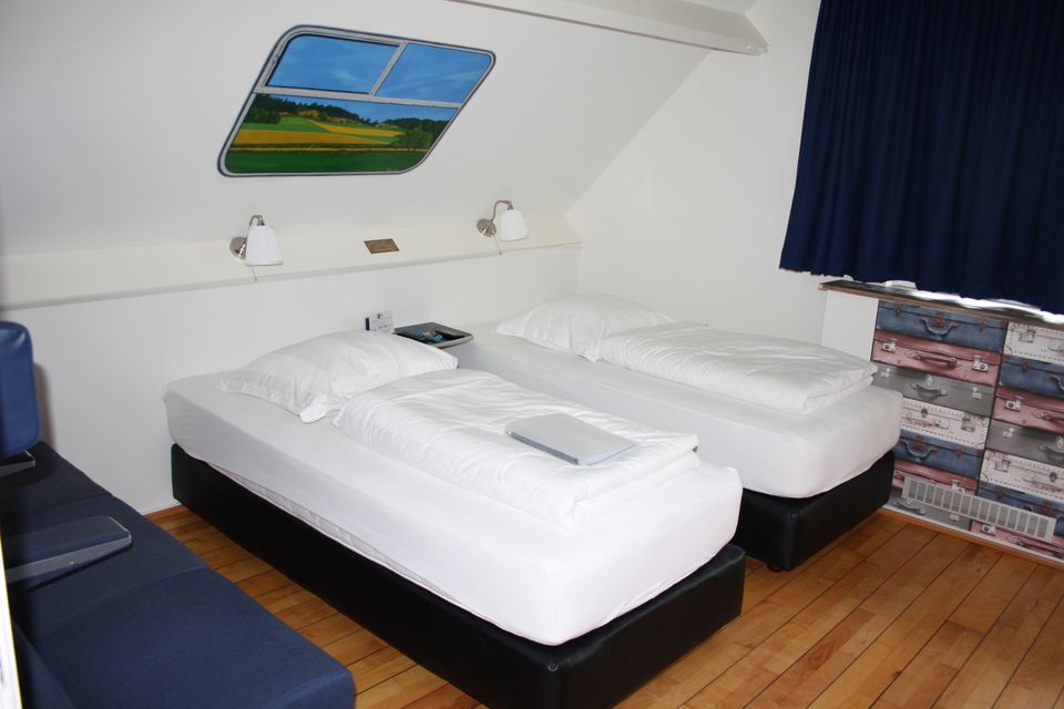 De treinkamer heeft als enige kamer de badkamer bereikbaar via de vide. Twee heerlijke (los van elkaar staande) bedden in een fantastische NS-treincoupé zorgen tezamen met de fijne badkamer ook weer voor een fijn verblijf.