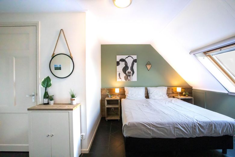 Midden tussen de weilanden en de grazende koeien vind je deze luxe ruime groepsaccommodatie. Via een eigen opgang betreed je de accommodatie op de eerste verdieping van de boerderij. Hier vind je de gezamenlijke huiskamer met keuken en dakterras waar je gezellig kunt zitten. De keuken beschikt over onder andere een ruimte koelkast, fornuis, vaatwasser, combi magnetron, koffiezetapparaat en Senseo. Ook vind je op de eerste verdieping 4 luxe boerderij hotelkamers. Elke kamer beschikt over een eigen toilet en douche en heeft een heerlijk tweepersoonsbed. Een van deze hotelkamers beschikt over een extra grote badkamer met een ligbad, toilet en douche. Deze kamer heeft 2 luxe seniorenbedden en zorgfaciliteiten. Op de tweede verdieping van de accommodatie zijn nog twee familiekamers te vinden voor elk 5 personen. Beide kamers beschikken over 5 eenpersoons boxspring bedden. Ook hier is een groot toilet en een aparte douche. De accommodatie beschikt over een grote personenlift, zodat je gemakkelijk de eerste verdieping kunt bereiken. Bovendien zijn de dakramen allemaal op zithoogte, zodat je het prachtige Friese landschap kunt overzien. Heerlijk vertoeven met het hele gezin, de familie of een vriendengroep.