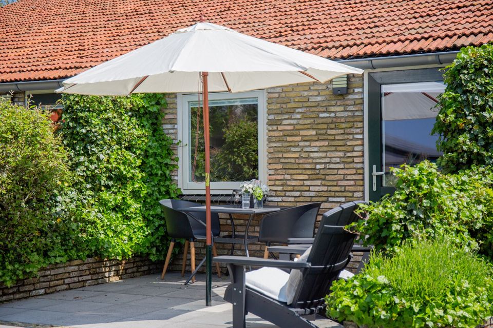 Sfeervolle en compleet ingerichte studio met directe toegang tot je eigen terras. Het appartementje beschikt over een kingsize bed, eethoek, loveseat, inloopkastje en een moderne keuken voorzien van koelkast, oven, tweepits kookplaat, koffiemachine en waterkoker. De fijne en-suite badkamer is voorzien van een wastafel, inloopdouche en toilet. Alleen de televisie ontbreekt, speciaal voor mensen die liever een boek lezen of een LP afspelen in de vakantie. Op je privéterras kun je genieten van fantastische zonsondergangen!