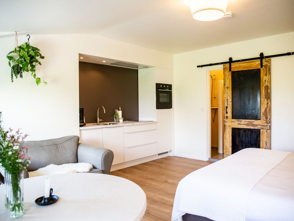 Sfeervol ingerichte studio met eigen keuken, badkamer en terras