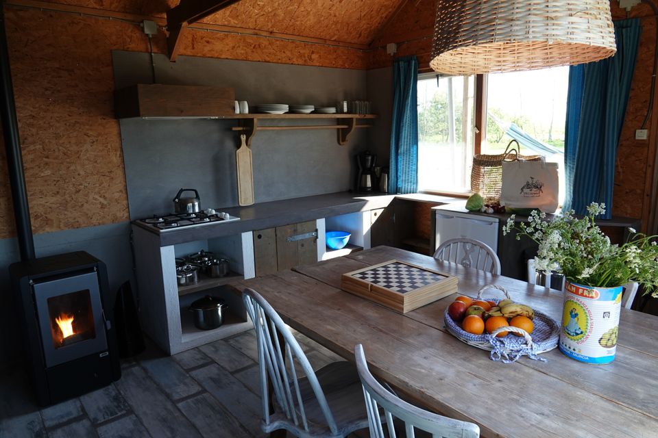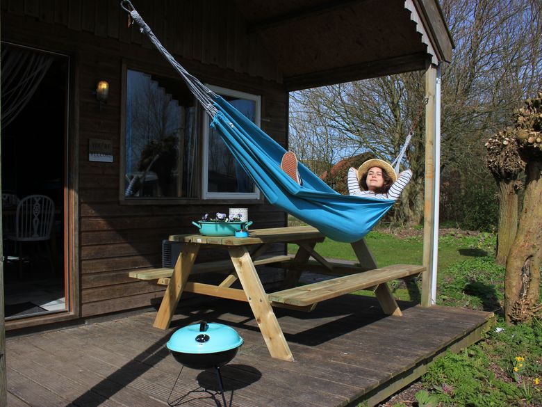 Wanneer je wel wilt kamperen, maar dit liever niet in een tent doet, dan is deze vakantiehut de perfecte uitkomst! De hut staat dicht bij de natuur aan een brede sloot met daarin verschillende waterplanten. De veranda die bij je hut hoort is een knusse en gezellige plek met onder andere een hangmat en picknicktafel. Wanneer je de hut binnenloopt zie je in een oogopslag alles wat je nodig hebt, drie stapelbedden, een keuken en een gezellige zitruimte met een grote tafel. Het sanitair bevindt zich op loopafstand van de hut.