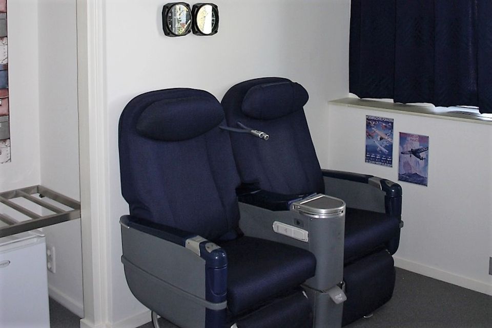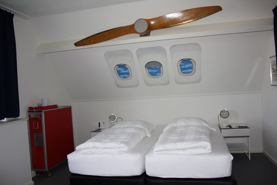 Wat dacht je van slapen in de ‘Business-Class’ van KLM? de prachtige ‘Vliegtuigkamer’ maakt dit mogelijk. Een kamer met alle gemakken van dien, badkamer en-suite en uitzicht over de jachthaven. Je kunt het vast niet laten de fijne stoelen te proberen!