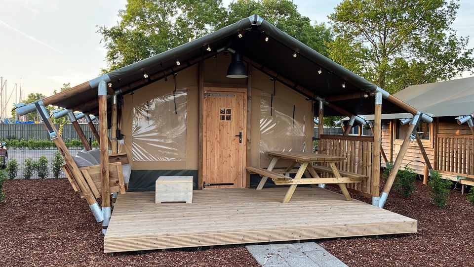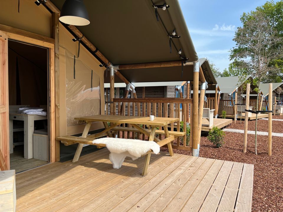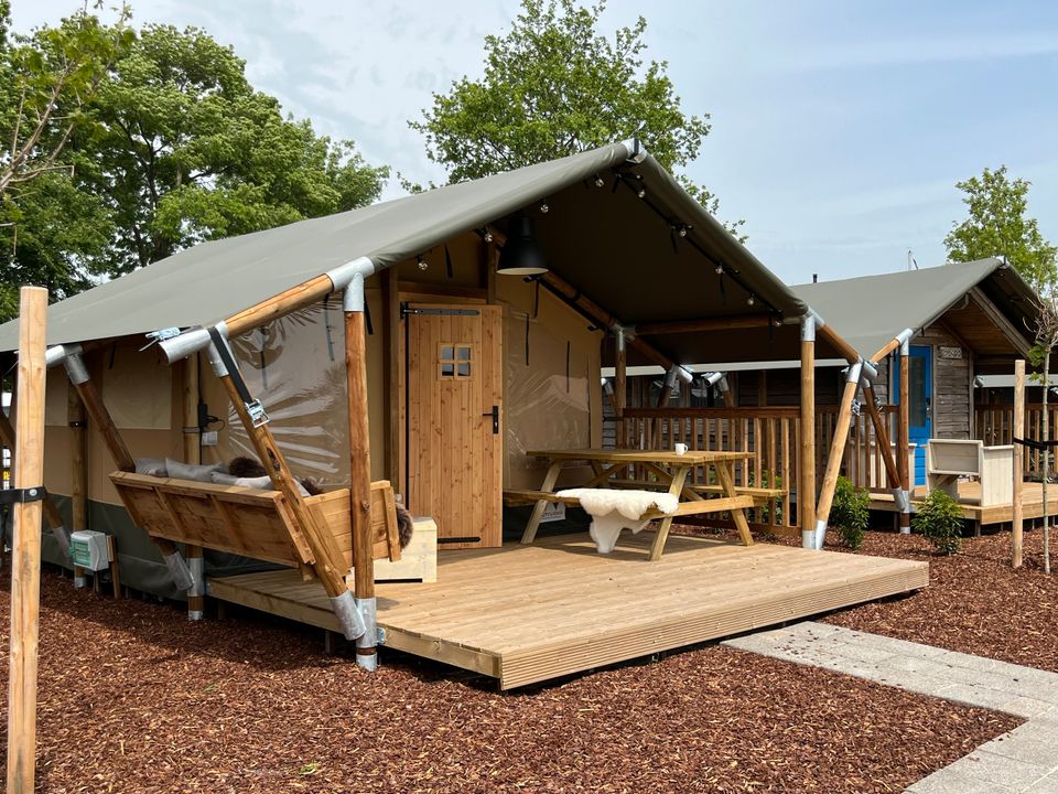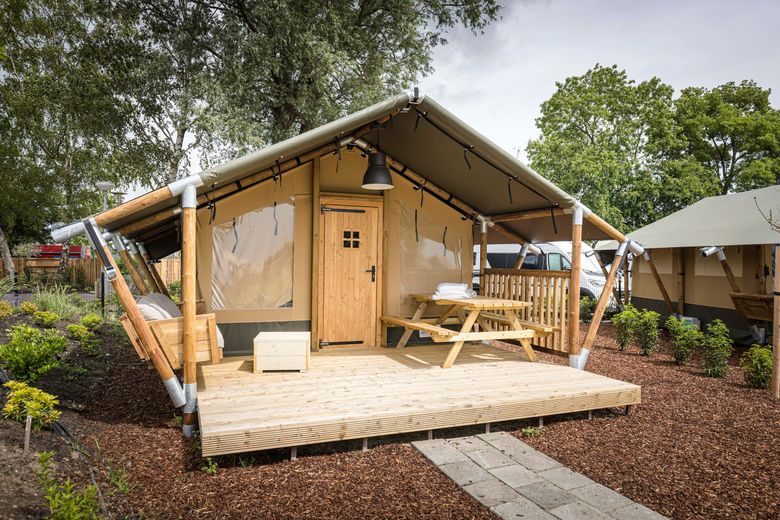 Ruime vierpersoons glampingtent gelegen aan het Heegermeer