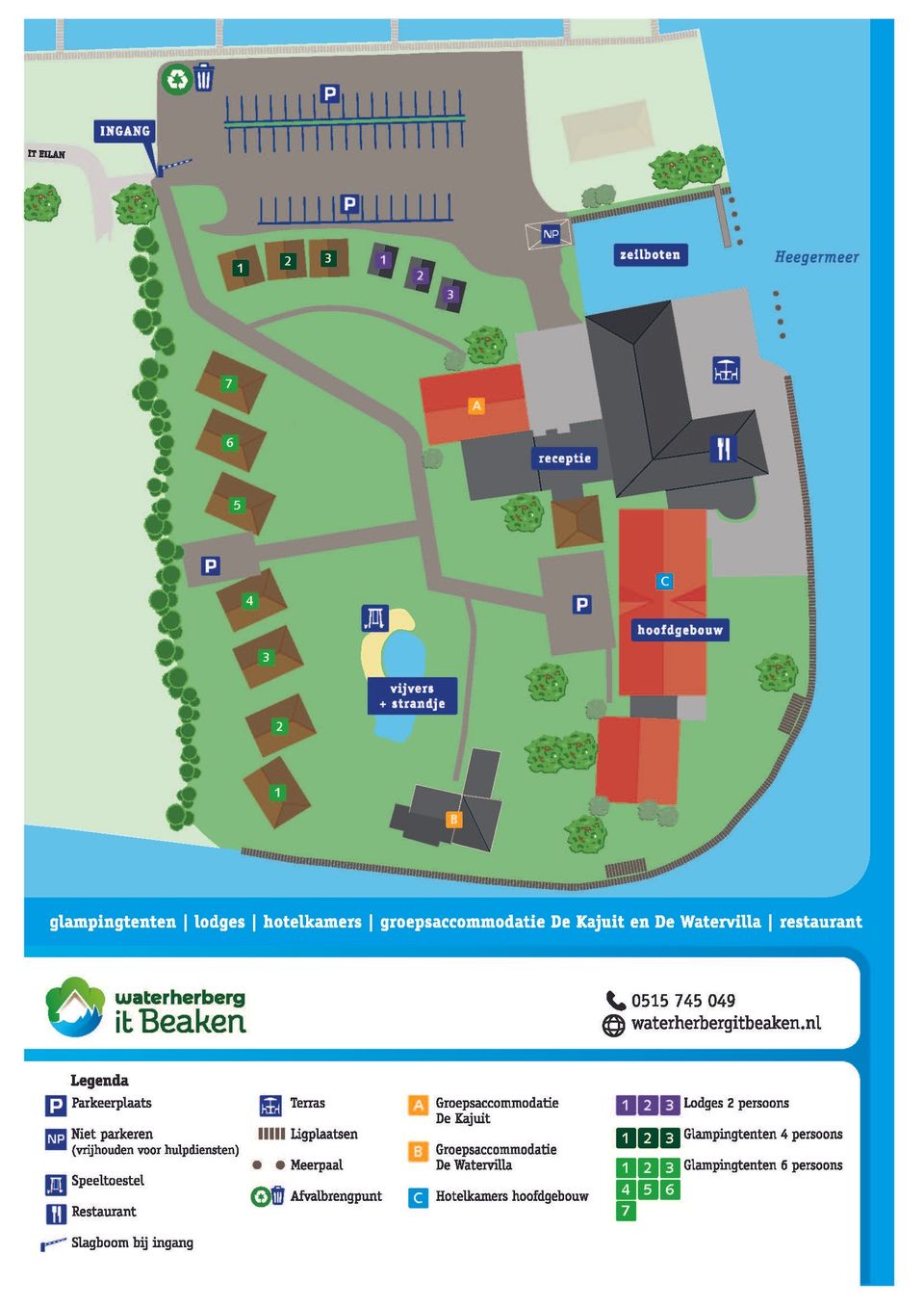 It Eilan 658621CT Heeg Plan je route naar Waterherberg It Beaken - Vierpersoons glampingtent