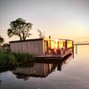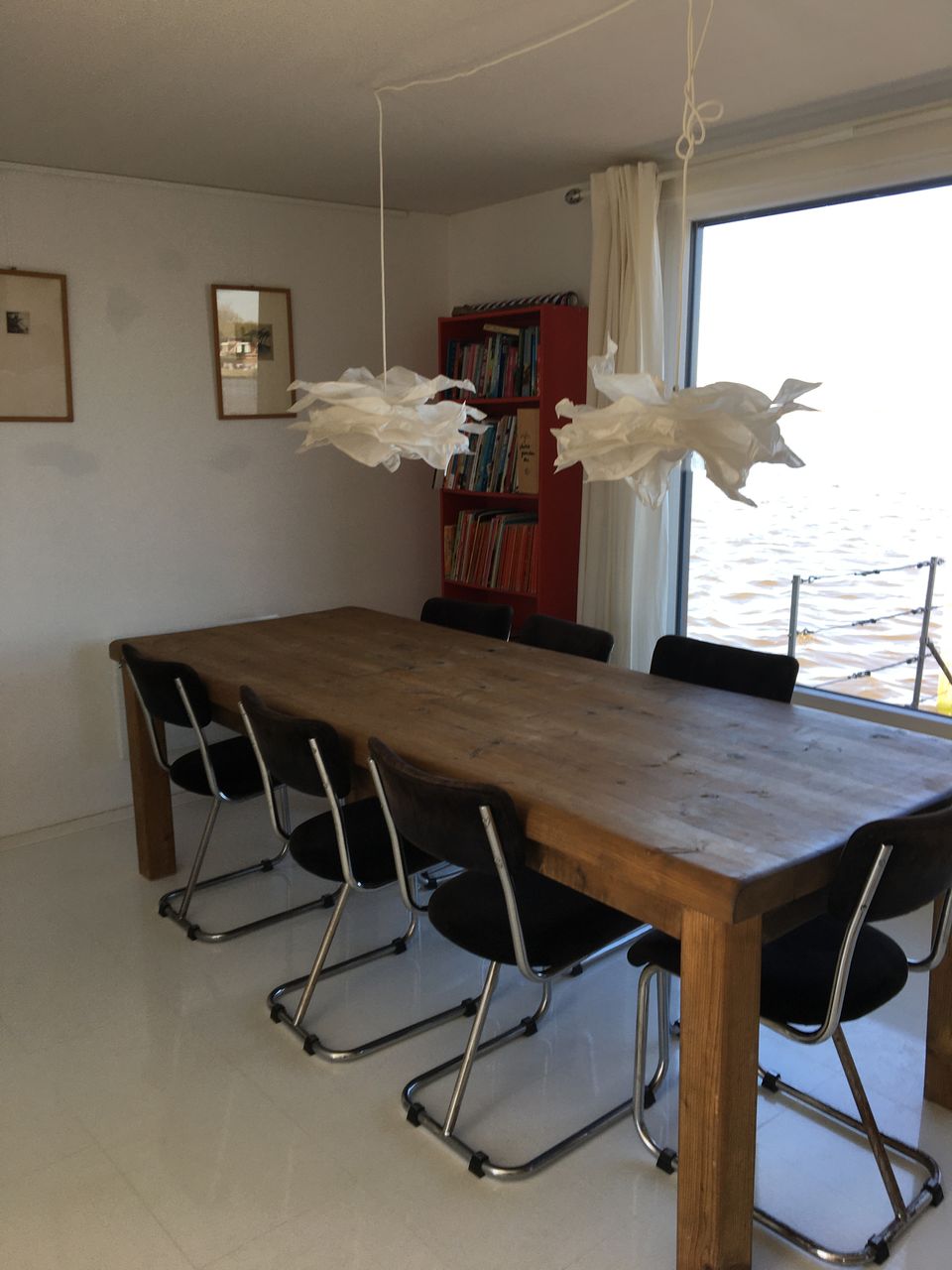 Grote ramen bieden een fantastisch uitzicht over het water. Zowel aan de landkant als aan de waterkant zijn grote terrassen. Naast de woonboot ligt een klein strandje.