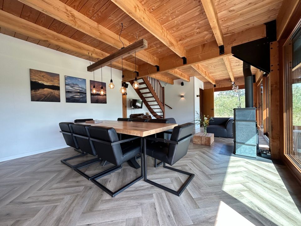 Deze prachtige woning, twee woningen onder 1 kap, is gelegen op een privé eiland. Je parkeert je auto, stapt aan boord van de elektrische sloep en vaart zo naar het huis! De woningen zijn los te huur (zie de andere advertenties), maar ook tegelijk, zodat je er met 14 personen kunt verblijven. De vakantiewoningen zijn van alle gemakken en luxe voorzien en heeft twee ruime woonkamers met een prachtig uitzicht over het Nationaal Park de Âlde Feanen of op de Janssloot. De twee woonruimten bevatten onder andere een zithoek die is gesitueerd rondom een spekstenenkachel. In beide woningen is een eethoek en een fijne keuken, deze is van alle gemakken voorzien en bevat onder andere een oven, koelkast en buiten staat een Takumi-barbecue. Er zijn acht slaapkamers met plaats voor veertien personen. De slaapkamers bevatten ofwel tweepersoonsbedden ofwel twee eenpersoonsbedden. Tevens is er een slaapkamer met een tweepersoonsbed en een eenpersoonsbed. De badkamers beschikken over een douche, toilet en wastafel. Tevens is er ook nog een los toilet in het huis.