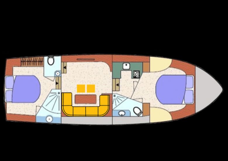 De Florien Elite is een licht ingericht jacht met twee hutten en een praktische indeling. De buitenruimte met loungebank maakt het een fijne keuze voor wie ook buiten wil genieten.
