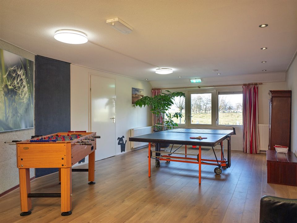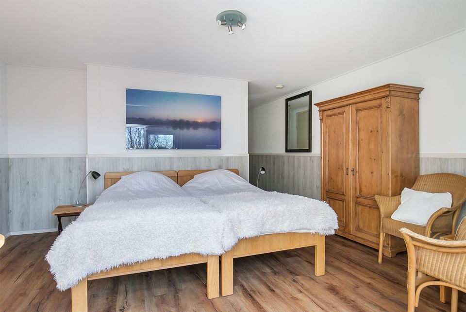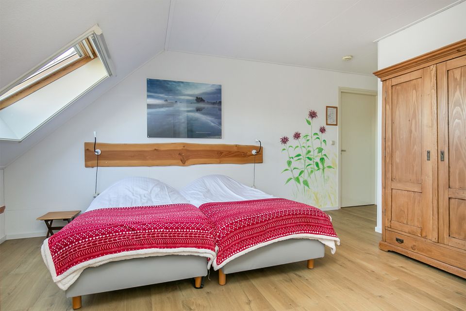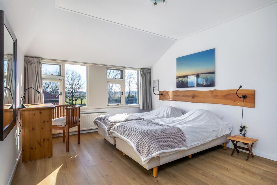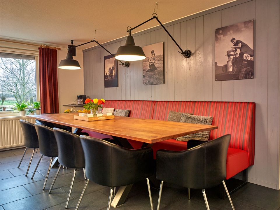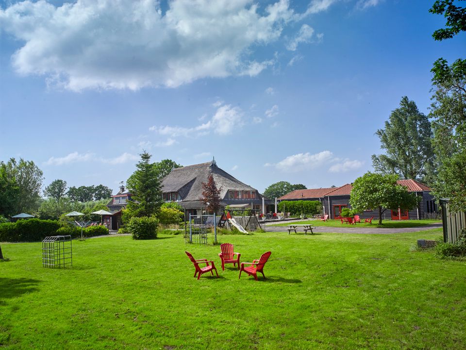 Dit buitenhuis is een groepsaccommodatie geschikt voor 13-25 personen. De voormalige boerderij is prachtig riet gedekt en ligt aan het einde van een onverhard pad. Dit maakt dat het de optimale locatie is om te genieten van totale rust en ruimte. De woning beschikt over een gezellige woonkamer met openhaard en een complete keuken met voldoende inventaris voor 25 personen. Tevens is er een speelkamer voor de kleinste gasten. Er zijn 12 slaapkamers, deze zijn geschikt voor 1 of 2 personen. Iedere slaapkamer heeft de toegang tot eigen sanitair met douche, toilet en wastafel. Daarnaast is er nog een extra, 13e, badkamer. Rondom de woning is een ruim terras en speelweide. Vanaf hier heb je een prachtig uitzicht over de tuin en op de weilanden met koeien.
