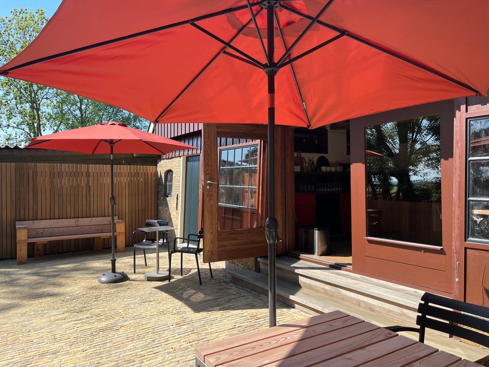 De Timmerwerkplaats is in 2024 verbouwd tot een comfortabel en stijlvol gastenverblijf voor 8 personen. Je huurt altijd het volledige huis, wat het ideaal maakt voor grote families of meerdere gezinnen. De inrichting is duurzaam, met meubels van massief hout van Pilat&Pilat. Beneden vind je een ruime, sfeervolle woonkamer met grote eettafel, moderne keuken en openslaande tuindeuren naar het terras aan het water. Op de bovenverdieping bevinden zich twee royale familiekamers, elk voorzien van een tweepersoonsbed, een stapelbed, een eigen douche en toilet. In de moderne aanbouw vind je nog een extra verblijf met een tweepersoonsbed beneden, een tweede tweepersoonsbed op de vide, en eveneens een eigen badkamer. Rondom het huis ligt een ruime tuin met terras, grenzend aan een stille vaart.