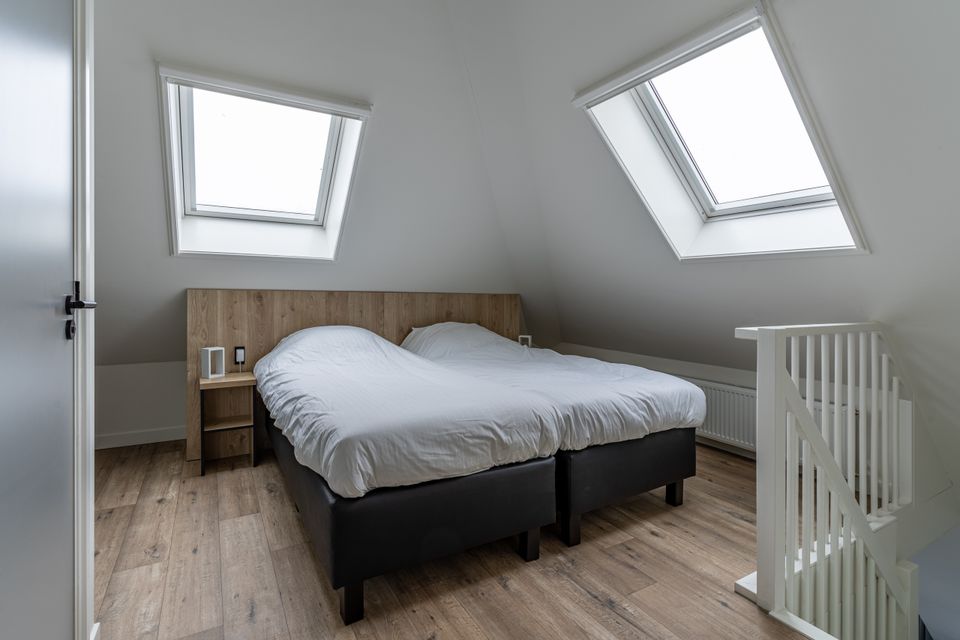 Dit fijne appartement is gelegen op de eerste etage en biedt een prachtig uitzicht over het Sneekermeer. Je komt in een hal binnen met daar de badkamer met douche, toilet en wastafel. Een schuifdeur verder bevindt zich de eerste slaapkamer met twee eenpersoons boxspringbedden en toegang tot het balkon. De woonruimte is van alle gemakken voorzien met schuifpui naar het terras, met bijbehorend meubilair, een comfortabele zithoek met televisie en een gezellig eethoek met ronde tafel. De keuken is gesitueerd in het hart van de woonruimte en is compleet uitgerust met onder andere een vaatwasser, combi-oven en losstaande koelkast. Via de trap loop je nog een etage naar boven waar zich een tweede slaapruimte bevindt. Deze ruimte heeft net als de slaapkamer twee eenpersoons boxspringbedden, maar is niet een afgesloten ruimte. Tevens is hier een tweede toilet en de wasmachine.