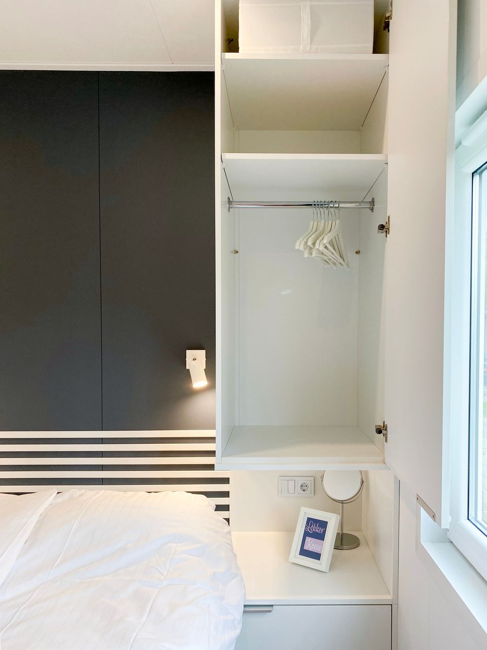 Dit nieuwe chalet (2024) is een heerlijke plek om jouw vakantie in Friesland in door te brengen. Het chalet heeft o.a. twee slaapkamers en drie airco's. De grote slaapkamer heeft twee gekoppelde eenpersoons hotelboxspringbedden (210cm lang) en de andere slaapkamer heeft een geschakeld stapelbed. Het onderste bed is daardoor ook zeer geschikt voor volwassenen. Het chalet is daardoor geschikt tot max. 3 volwassenen en 1 kind en eventueel 1 baby.