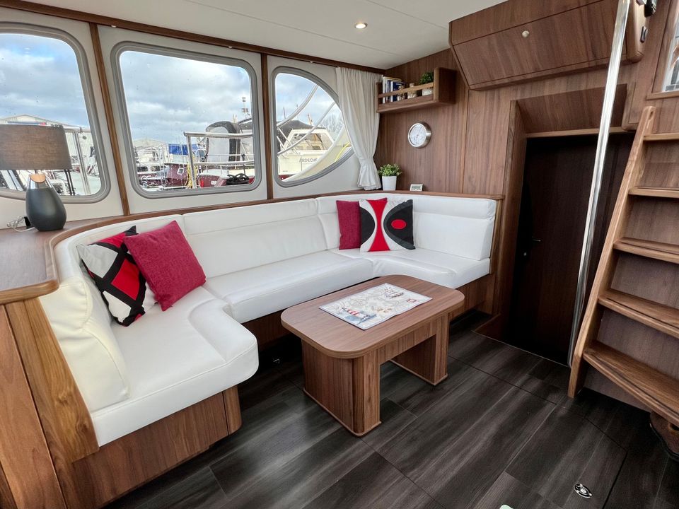 De salon is voorzien van dubbele beglazing en het hele schip beschikt over vloerverwarming – comfortabel in elk seizoen.