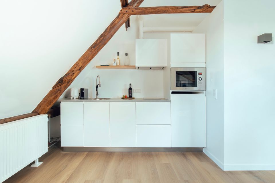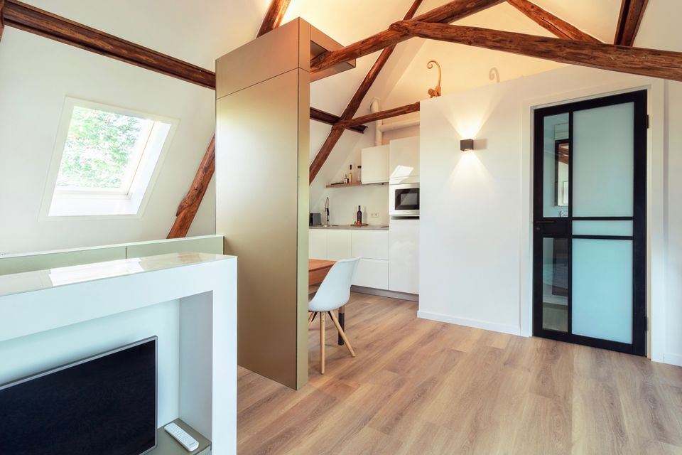 In de nok van deze met liefde verbouwde moderne woonboerderij bevindt zich het lichte B&B appartement. Er is een gezellige moderne living met uitzicht over de polder. De studio met de open keuken, de knusse zithoek en het sfeervolle slaapgedeelte met een comfortabel boxspringbed onder de oude gebinten is een heerlijke plek om te verblijven. De studio beschikt tevens over een eigen badkamer met toilet. In de ontbijtkamer beneden kun je 's ochtends heerlijk ontbijten (15,00 p.p.) met uitzicht op de tuin of bij mooi weer uiteraard lekker buiten op het terras. De tuin beschikt over een zonnig terras en een Hou gestookte hottub. Kom heerlijk tot rust en onthaasten in deze heerlijke B&B nabij Lemmer. De B&B ligt in de nok van de boerderij en deze is bereikbaar via 2 goede trappen en hierdoor wellicht minder geschikt voor mensen die slecht ter been zijn.