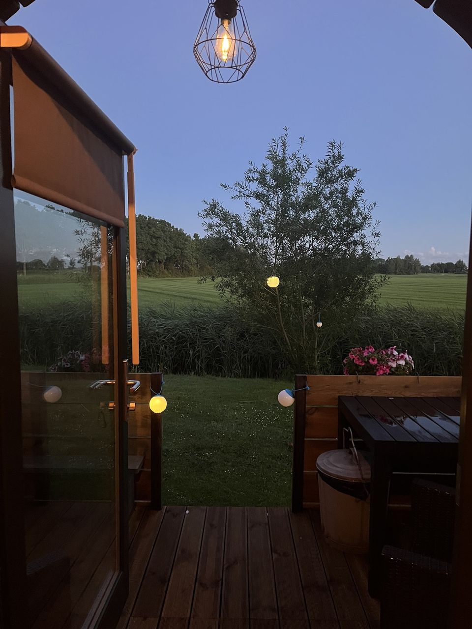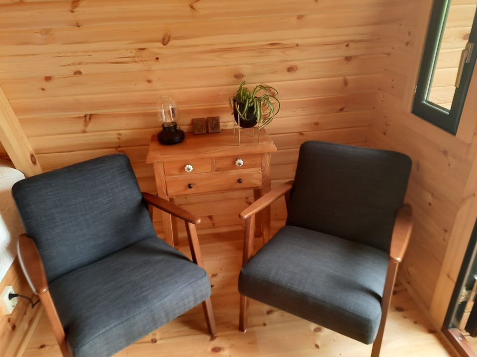 Met een verblijf in deze campingpod kun je kamperen met comfort! Je komt binnen in het knusse hutje met een zithoek, slaapruimte en keukenblokje. In de opbergkast staat een koelkast, waterkoker en koffiezetapparaat. Via de glazen deuren kom je op de veranda waar een zitplaats is en je een mooi uitzicht over de landerijen hebt. De campingpod heeft geen eigen sanitair, maar je kunt gebruik maken van het nabij gelegen sanitair gebouw.