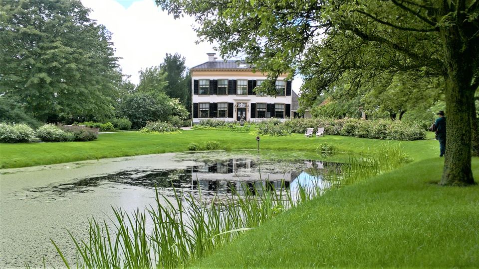 Je ziet dit erfgoed vooral vanaf de weg, maar het is een prachtige plek voor een korte stop. Op een kaart kun je zien hoe groot de tuin is die achter de boerderij ligt. Er lopen verschillende kronkelende paden door de tuin. Daarop was het rond 1820 lekker rijden op je loopfiets.