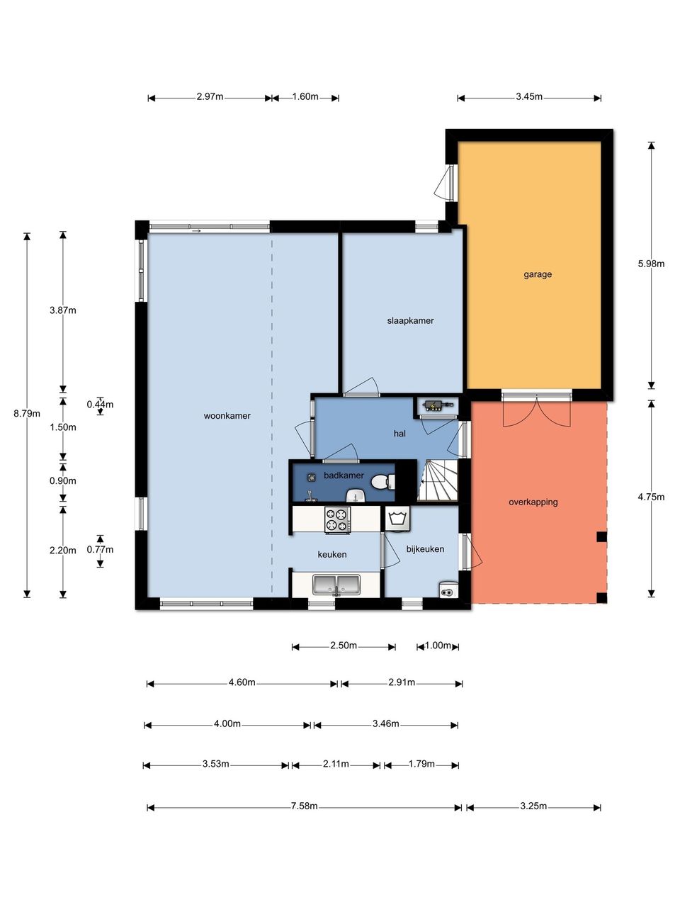 Deze fijne, vrijstaande woning aan het water is van alle gemakken voorzien! Nadat je auto is geparkeerd en je door de voordeur naar binnen bent gestapt, sta je in de hal van het huis. Hier vind je meteen al de eerste badkamer. Wanneer je de woonkamer binnenstapt zie je een ruime woonkamer met grote bank, geschikt voor het gehele gezin! Via de eetkamer loop je zo de keuken in, waar je fijn kunt koken. Op de begane grond is ook een van de slaapkamers gesitueerd. Wanneer je de trap op naar boven loopt, sta je op de vide vanwaar de hele woonkamer en eetkamer kan worden overzien. Tevens zijn hier twee slaapkamers, waarvan een met een stapelbed en de andere met twee boxspringbedden. In de badkamer boven kun je zelfs heerlijk luieren in bad. Vanaf de woonkamer stap je zo de tuin in, hier kun je genieten van het weer, een duik in het water nemen of aan boord stappen van je (gehuurde) sloep!