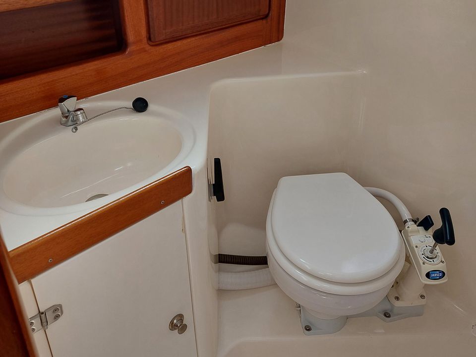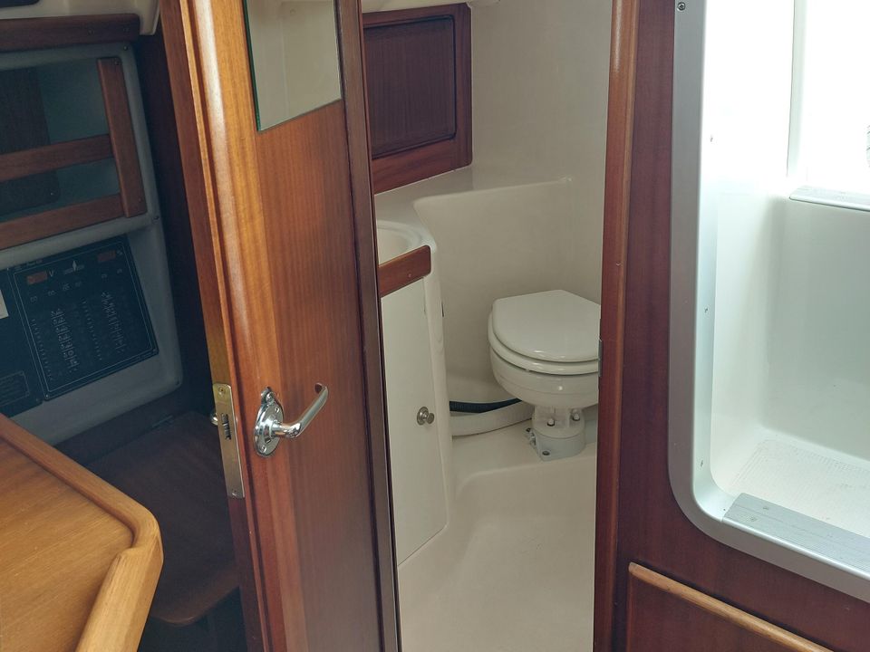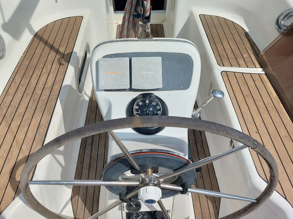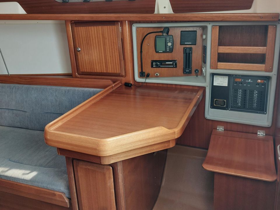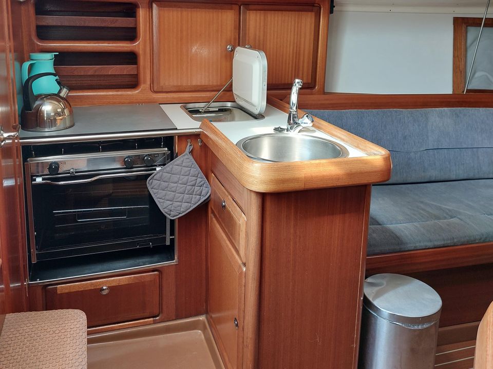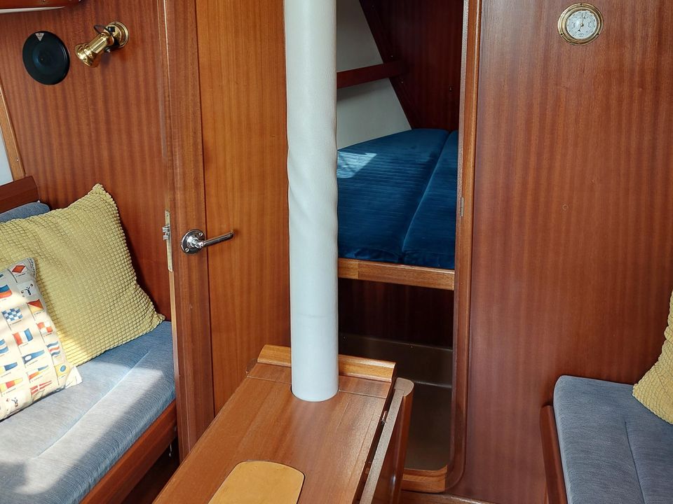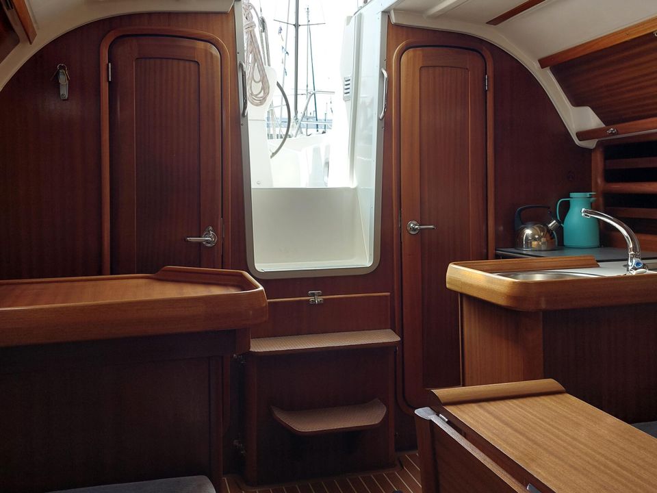 De Bavaria 32 is zeer ruim van binnen en door de rol fok en rol grootzeil zeer eenvoudig te varen. Ruime moderne kuip biedt meer dan voldoende bewegings- en zitruimte met vaste stuurstand en stuurwiel. Bij binnenkomst is aan bakboord een ruime keuken. Deze is uitgevoerd met een spoelbak, een gasfornuis inclusief oven en de nodige werk- en kastruimte. Daarachter bevindt zich een ruime 2-persoons hut, inclusief goede matrassen. Tegenover de keuken aan stuurboord zijde is een ruime kaartentafel met daarachter het toilet. In de punt vind je nog meer slaapruimte, tevens voorzien van goede matrassen.