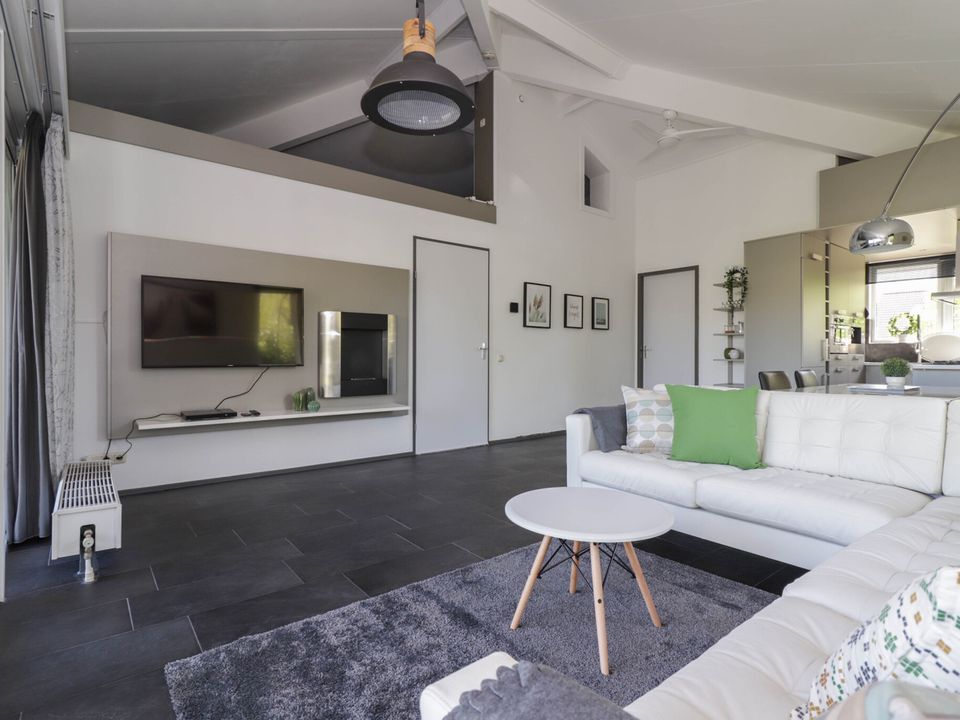In deze vrijstaande 4-persoons bungalow kun je heerlijk genieten van een ontspannen vakantie. De ruime woonkamer beschikt over een gezellige zithoek met grote flat screen TV en bio-ethanol haard. Aan de voorzijde van de woonkamer bevindt zich een luxe open keuken met eigen bar. Zo kun je de kok van de dag gezelschap houden tijdens het koken. De ruime tuin met terras en eigen aanlegsteiger is te bereiken via twee openslaande deuren. Hier zit je heerlijk tot in de late avonduurtjes. In totaal zijn er twee slaapkamers, waarvan de eerste slaapkamer beschikt over een tweepersoons boxspring. De andere kamer heeft twee losse boxspringbedden. Beide natuurlijk even comfortabel. In de badkamer kun je je heerlijk opfrissen of helemaal tot rust komen. Deze beschikt namelijk over een fijne stoomdouche cabine en Whirlpool.