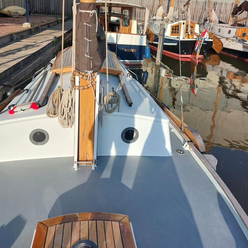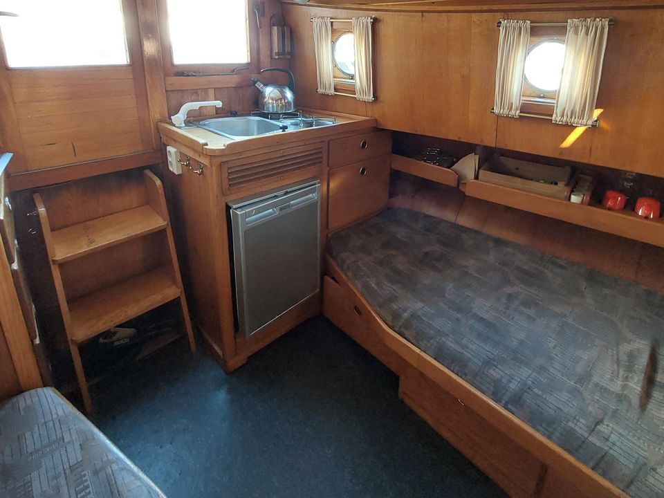 Stap aan boord van deze kleine zeeschouw welke knus en sfeervol is ingericht en betimmerd met licht eiken. De kajuit beschikt over een kombuis met een gootsteen, een 2-pits gasfornuis en koelkast. Ook is er voldoende bergruimte en een langbank van 1.90 meter die geschikt is als slaapplaats. In het vooronder bevinden zich twee bedden. Deze kunnen door middel van een knuffelplank aan elkaar verbonden worden tot een grote slaapplaats, zodat er eventueel ook een kind bij kan slapen. Het schip zeilt zeer stabiel en makkelijk. Het schip is uitermate geschikt als opstapboot van een valk naar een platbodem.