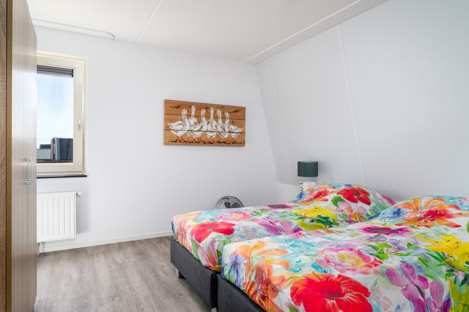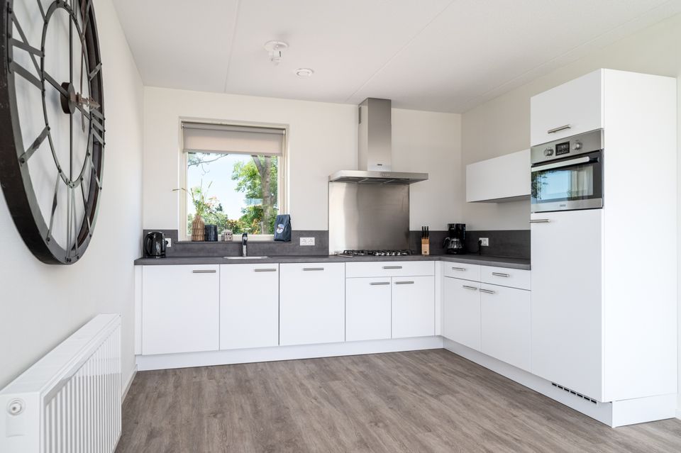 Deze nette vakantiewoning is aan het water gelegen op een vakantiepark. Op de begane verdieping bevindt zich de woonkamer met open keuken. De woonkamer beschikt over een zit- en eethoek met televisie. Vanuit de woonkamer loop je via de openslaande deuren zo het terras op. De open keuken beschikt over een vaatwasser, koffiezetapparaat, koelkast met vriesvak en combimagnetron. In de hal is een separaat toilet. Op de eerste verdieping bevinden zich 3 slaapkamers met twee eenpersoons boxspringbedden. Daarnaast is er op de bovenverdieping een badkamer met douche en wastafel. Sommige woningen bezitten boven ook over een toilet. Buiten is een gemeubileerd terras en een eigen aanlegsteiger, waar je heerlijk kunt genieten!