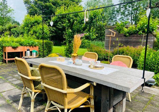 Een rustpunt om even op adem te komen en genieten van een heerlijk kop koffie of thee in onze tuin van dagbesteding de Stipe.
