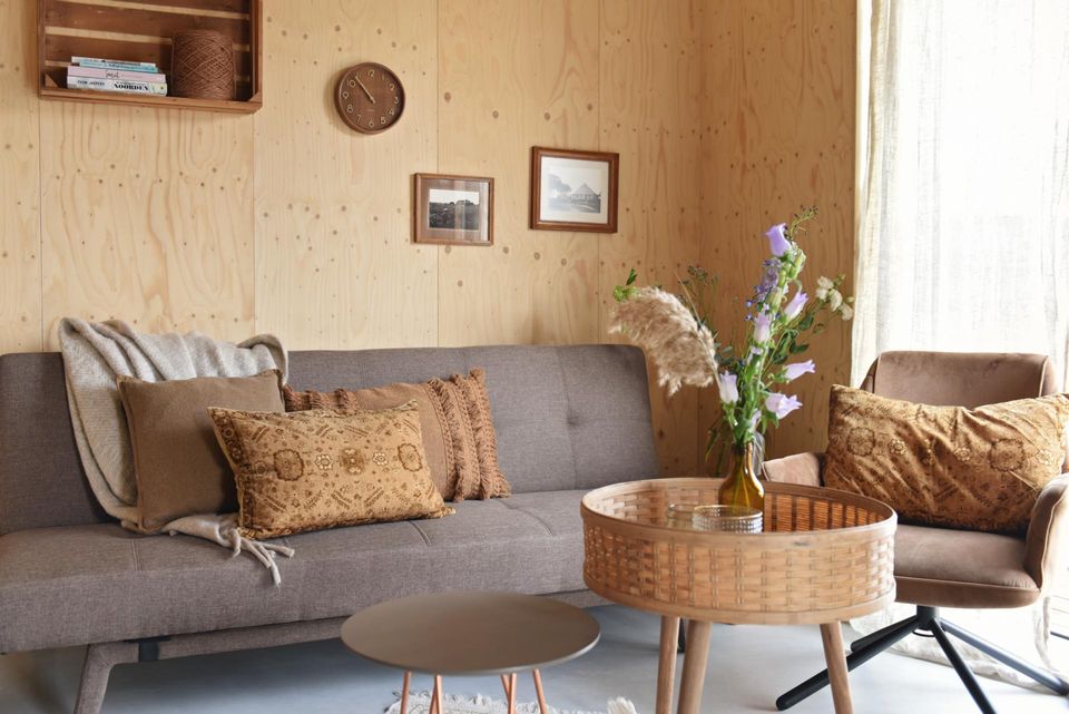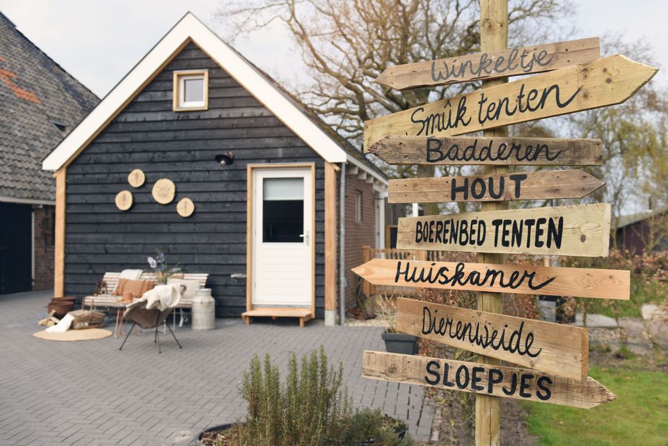 Je kunt gebruik maken van de hottub. Er is elektrische sloepverhuur aanwezig en de kinderen zullen veel plezier beleven op het klimtoestel. Er zijn geitjes, kippen voor verse eieren en koeien en paarden in de wei en je kunt verse producten kopen in de aanwezige boerderijwinkel. In de boerderijschuur vind je een gezellige huiskamer. Wie had ooit gedacht dat hooibalen zo stijlvol kunnen zijn? De zachte lichtpeertjes hangen speels door de ruimte. De boerentafels zijn perfect voor een avondje gourmetten, of een potje Rummikub. De huiskamer is een plek waar je gezellig samen kunt zijn maar ook heerlijk jezelf kunt terugtrekken en genieten van de rust die het oude gebint uitstraalt. Soms wordt er een kop koffie gedronken en spelen er kinderen in de kinderkeuken. Op andere momenten is het rustig en plof je in één van de vintage stoelen voor een luie middag.