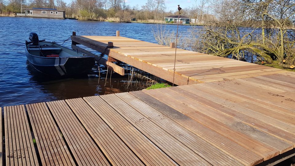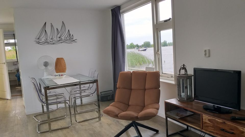 Woonboot De Wulp beschikt over een gezellige woonkamer met open keuken, een slaapkamer met twee elektrisch verstelbare bedden en een badkamer. Buiten vind je een ruime tuin met een vernieuwd vlonderterras. Gelegen aan het water, biedt de woonboot een prachtig uitzicht.