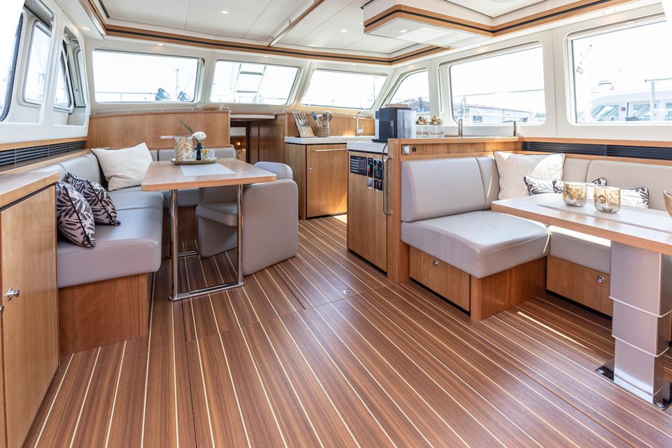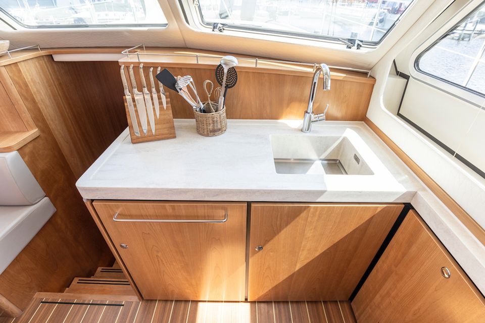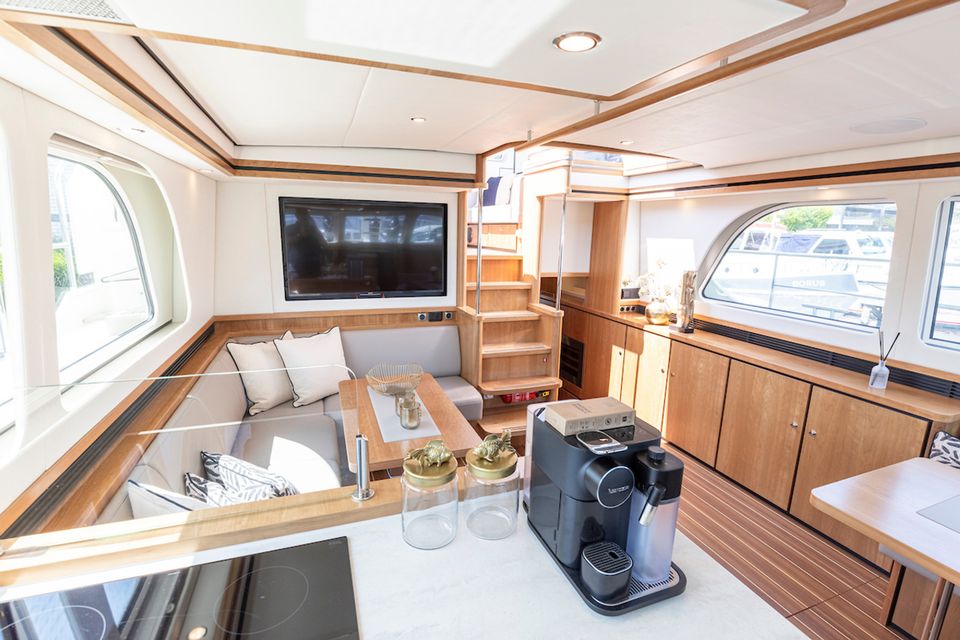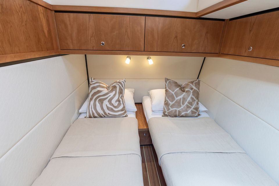 Dit nieuwe jacht is zeer compleet uitgevoerd voor zowel binnenwateren als zee. De stabilisatoren zorgen voor perfecte stabilisatie op onrustig water, wat een ongeacht het weertype een rustige reis garandeerd.