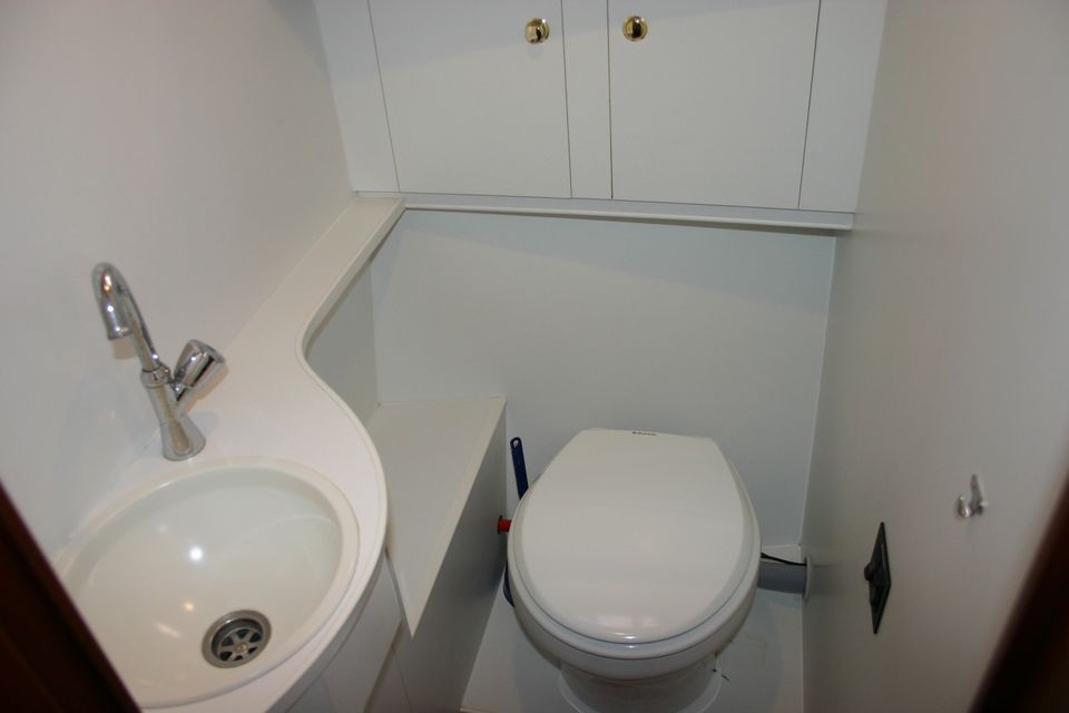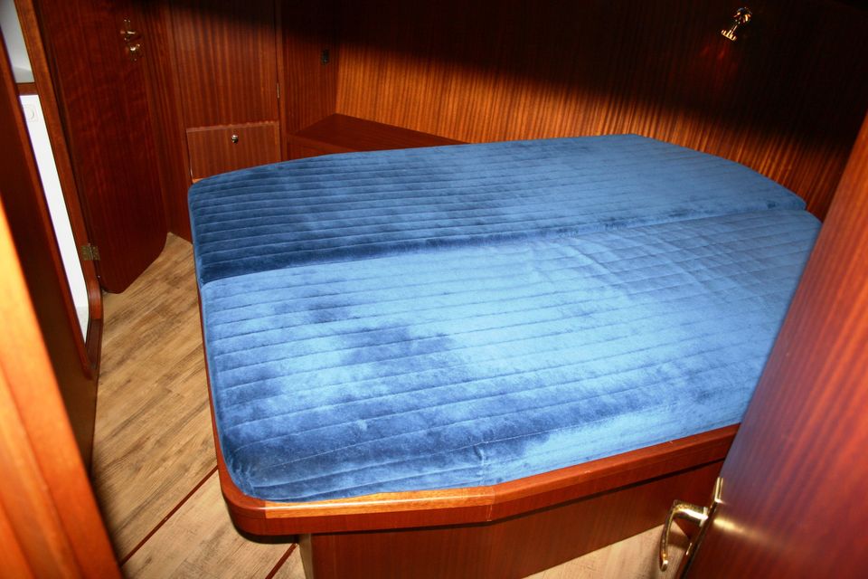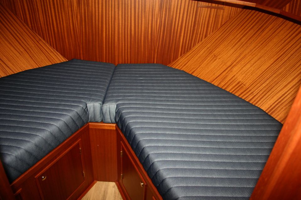 Indeling: In het voorschip vind je twee ruime eenpersoonsbedden en een badkamer met wastafel en elektrisch toilet. Tegenover de keuken ligt een extra slaapkamer met twee eenpersoonsbedden. De keuken is volledig ingericht voor 6 personen en voorzien van een 4-pits gaskooktoestel, koelkast en koffiezetapparaat. De salon is sfeervol ingericht met een L-vormige zithoek met lederen kussens en twee losse kuipstoelen. In de ruime achterkajuit bevindt zich een groot tweepersoonsbed, een tweede elektrisch toilet, een wastafel en een aparte douchecabine. Ook hier is volop opbergruimte.