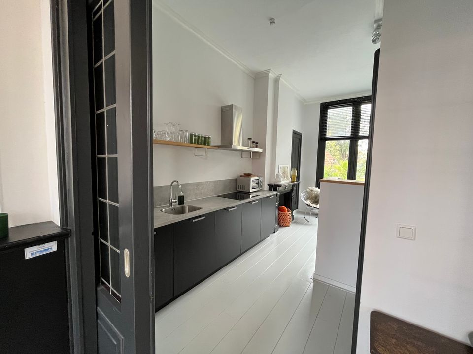 De luxe ingerichte Etage is een appartement gelegen op de eerste verdieping en biedt vanuit de zit- /eetruimte een prachtig uitzicht op de stadsgracht (Elfsteden). De Etage is te bereiken via het monumentale trappenhuis. Het slaapgedeelte is gelegen aan de achterzijde en afsluitbaar door de originele en-suite deuren. Van hieruit is ook het dakterras toegankelijk. De Etage beschikt over een luxe badkamer met regendouche en een apart toilet. Een volledig uitgeruste keuken, met onder andere een koffiemachine, vaatwasser, koelkast en magnetron is aanwezig wat een verblijf voor langere tijd mogelijk maakt. De Etage beschikt ook over een moderne TV met Netflix en (eigen) WiFi.