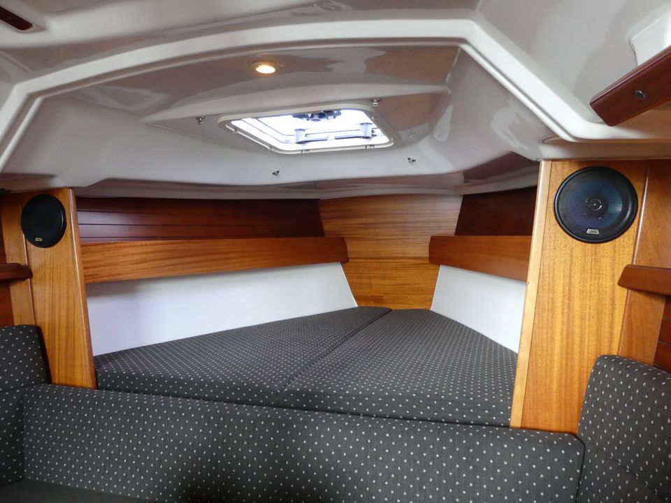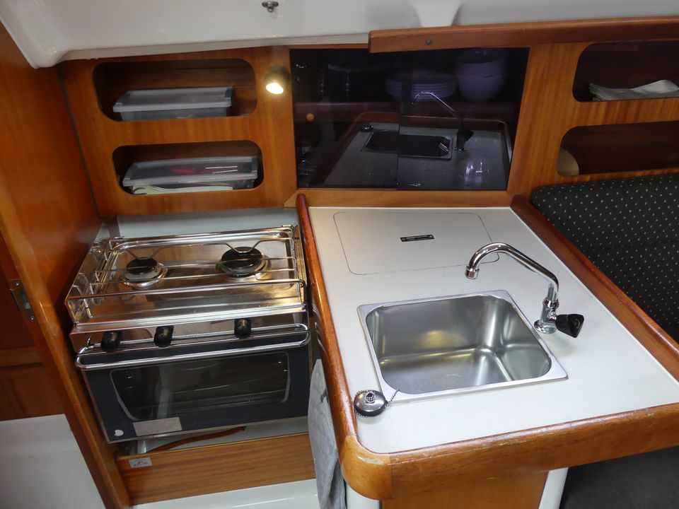Met dit moderne, ruime familie-jacht kun je door de geringe diepgang (1.20 mtr.) prachtig zeilen in Friesland, het IJsselmeer én de Waddenzee. Interieur-upgrade en nieuwe matrassen in 2021! Het grootzeil (snel reef) en de Genua (rolfok) zijn, met de self-tailing lieren, bedienbaar vanuit de kuip. Sturen gaat door middel van een helmstok. In de kuip bevinden zich de snelheids- en dieptemeter evenals het kompas. De kuip biedt ruimte voor max. vijf volwassenen. De gasfles bevindt zich veilig buiten op het achterdek in de gasbun. Aan boord zijn een marifoon, radarreflector, lifelines en verrekijker. Een douche met koud water op het zwemplateau en zwemtrap. Aangemeerd in een haven sluit je de walstroom aan en beschik over stroom (220 volt). De kajuit van de Dufour 30 Classic heeft een stahoogte van 1.80 meter. Een in 2021 vernieuwde royale zithoek welke tevens twee (extra) slaapplaatsen is. Het tweepersoonsbed in de punt is verlengbaar. De achterhut biedt slaapruimte voor twee volwassenen, dit bed is voorzien van lattenbodems en nieuwe luxe matrassen. Beddengoed dien je zelf mee te nemen, hoofdkussens zijn aanwezig. De hetelucht verwarming maakt het aan boord aangenaam warm ook bij minder mooi weer. De keuken is volledig uitgerust met o.a. voldoende kookpannen, fluitketel, thermoskan en een compleet servies en keuken inventaris voor 4 - 6 personen. Er is een gasoven en een tweepits kooktoestel. Een diepe koelbox die na uitschakelen lang de temperatuur vasthoudt. De sanitaire ruimte beschikt over een toilet (manueel bedienbaar) een wastafel met kastruimte. Aan boord tevens een radio-cd-speler. De waterkaarten van Friesland, het IJsselmeer, Waddenzee (op aanvraag) en Almanak liggen klaar aan boord.