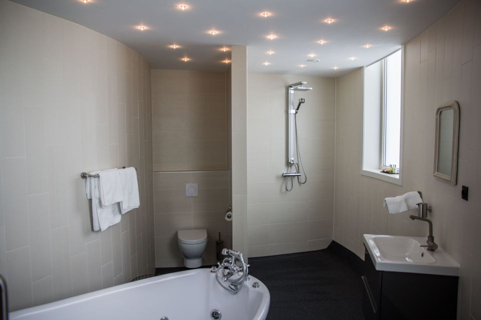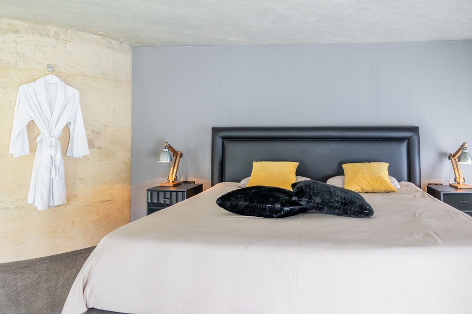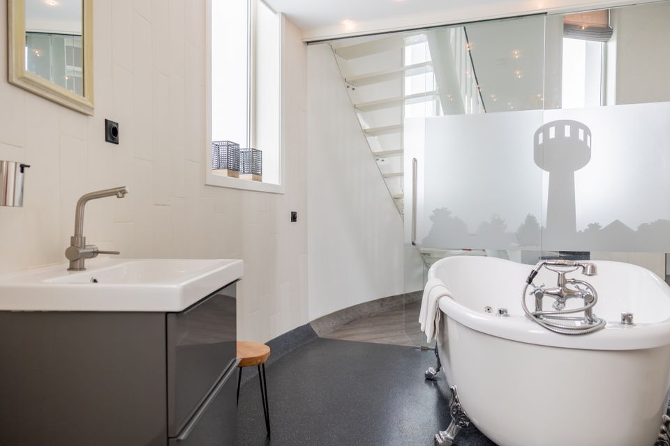 Bijzonder overnachten kan in deze luxe suite met schitterend uitzicht. Kamer 'Turrem' is een knipoog naar de toren van het hotel, de kamer zelf bevindt zich in het voormalige waterreservoir. De comfortabele kamer beschikt over een woonruimte met minibar, bank en eetruimte, evenals een grote tv. De badkamer is zeer compleet met een douche, toilet én ligbad. Via een trappetje bereik je de vide waar een groot tweepersoons boxspringbed staat, hier word je heerlijk uitgerust wakker. Door de unieke ligging op grote hoogte en de grote ramen heb je vanuit de kamer een schitterend uitzicht over Friesland!