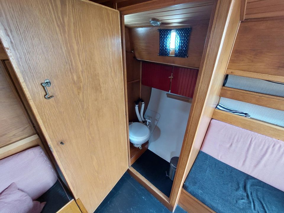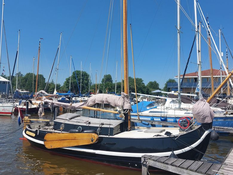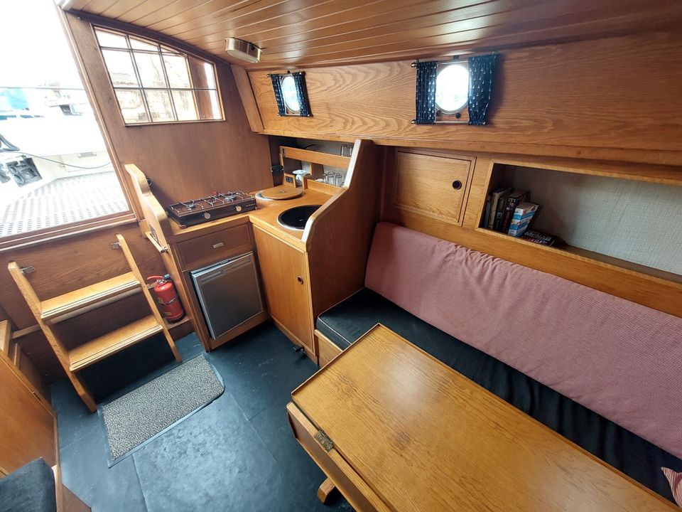 Je stapt aan boord van dit schip met veel binnenruimte en stahoogte. Het is binnen gezellig en van alle gemakken voorzien. In het vooronder is een tweepersoonsbed en twee eenpersoonsbedden. Van de bank in de kajuit kun je makkelijk een vijfde kleine slaapplek maken. Er is een grote zithoek aanwezig een keuken met koelkast, fornuis, dieselverwarming en een toilet. Het schip is makkelijk te zeilen met naast een gewone fok ook nog een kluiver.