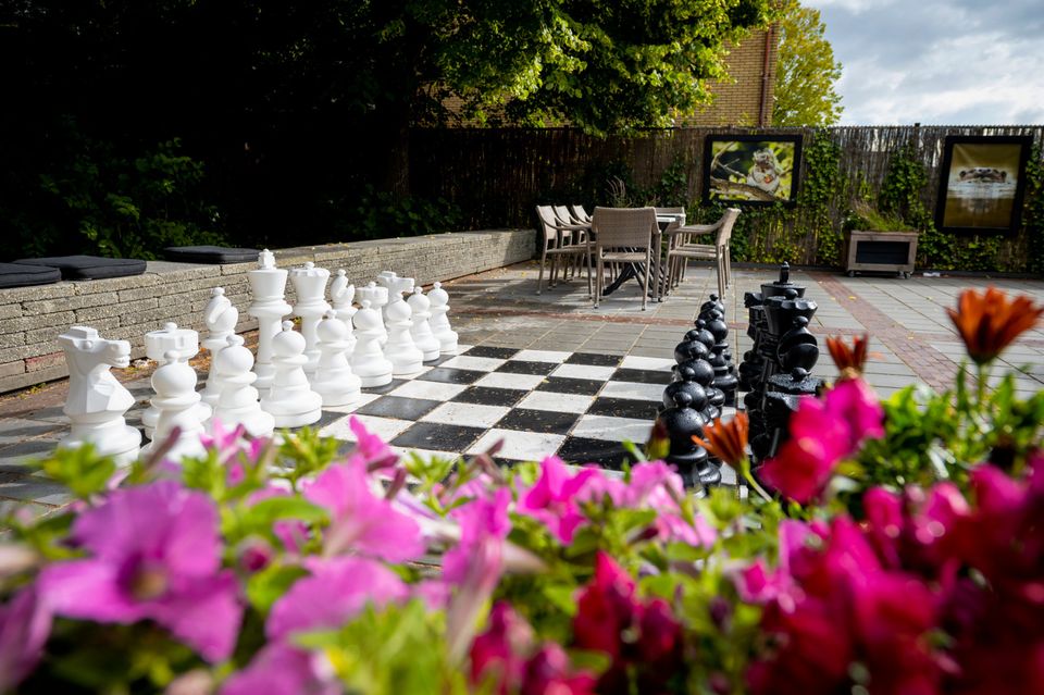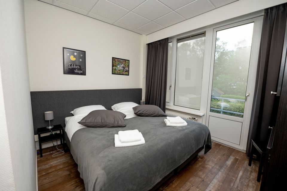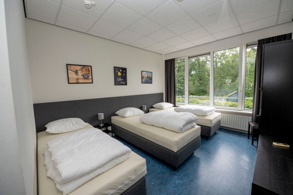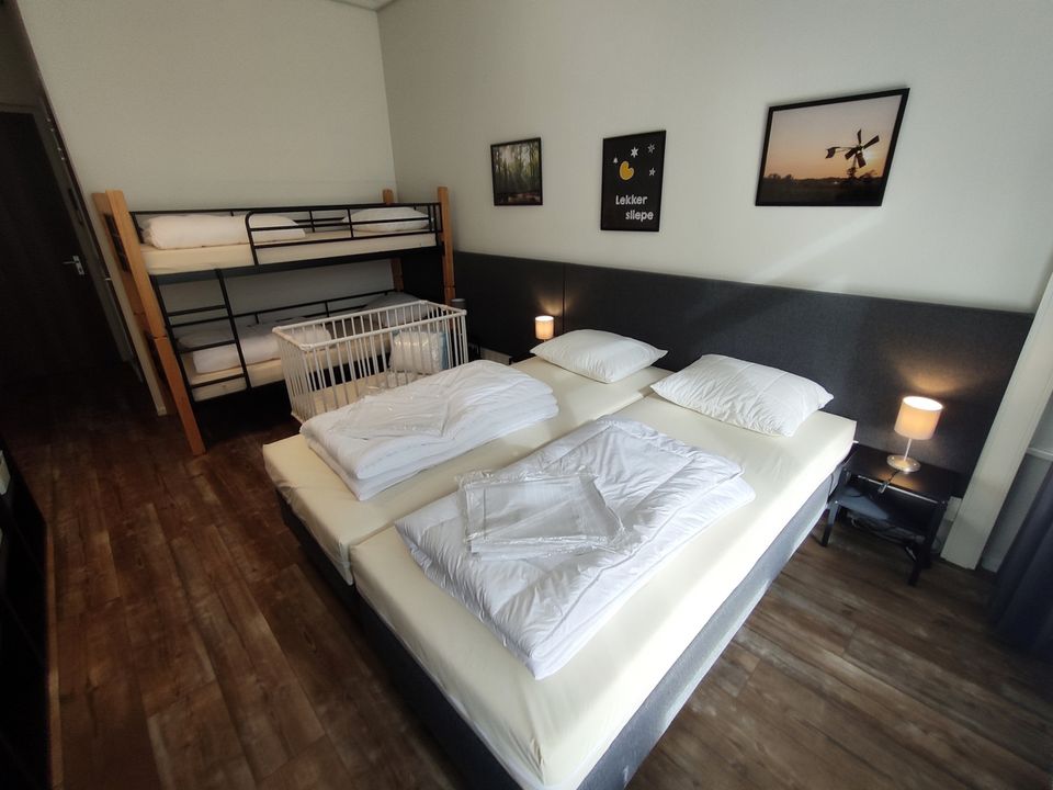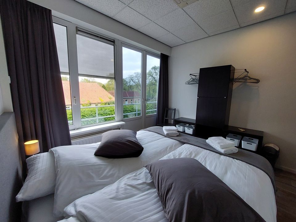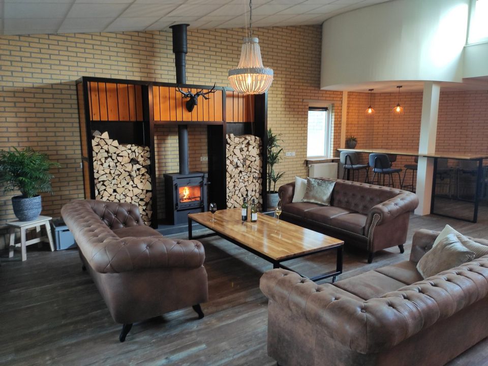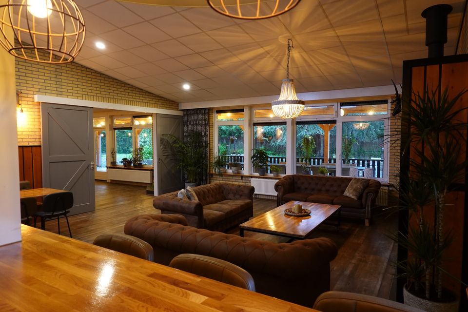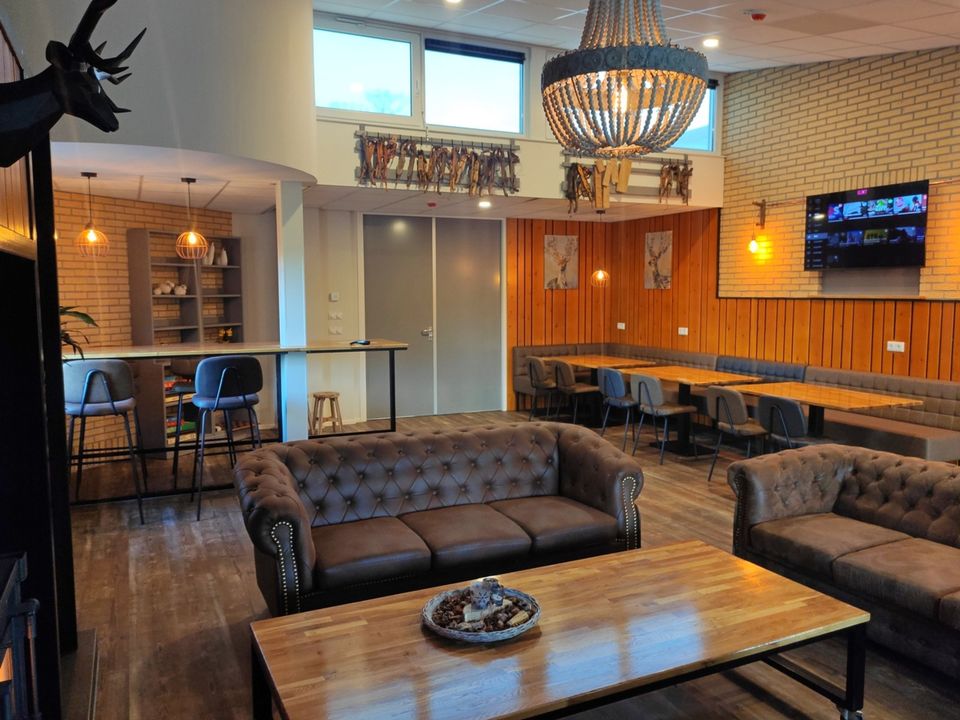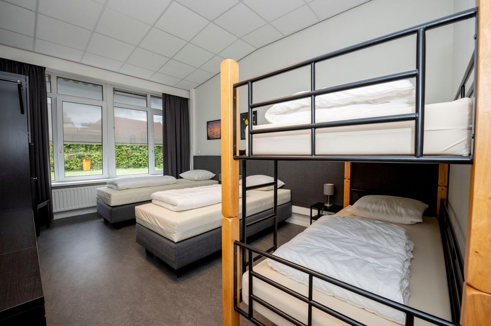 Deze grote groepsaccommodatie heeft 16 slaapkamers die geschikt zijn voor 2-4 personen per kamer. In totaal kunnen er 48 personen in de groepsaccommodatie logeren. De slaapkamers zijn verdeeld over drie afzonderlijke compartimenten waardoor deze accommodatie ook zeer geschikt is voor kleinere groepen. Er wordt dan een compartiment afgesloten zodat de accommodatie iets kleiner wordt. Iedere slaapkamer heeft een eigen badkamer met douche, toilet en wastafel. Daarnaast zijn er ook nog twee separate toiletten. Er zijn diverse woonruimtes die sfeervol ingericht zijn. Zo is er een ruime woonkamer met knusse zithoek en openhaard, maar er is ook een chill-game kamer met spelletjeskast en een speelkamer voor de kleinere kinderen. De grote keuken is volledig ingericht met een inventaris voor 48 personen en heeft tevens een groot elektrische kookplaat met 6 pitten, een oven, vaatwasser en ruime koelkast. Rondom de groepsaccommodatie is een ruime tuin met voetbalveld en zandbak. De tuin is helemaal omheind waardoor het voor kinderen veilig is om buiten te spelen. Daarnaast is er een grote overdekte veranda met buitenkeuken. Goed om te weten: de accommodatie is volledig aangepast voor mindervaliden. Zo is er een aangepaste badkamer met toilet, brede deuren, een lift en is de accommodatie volledig drempelloos!