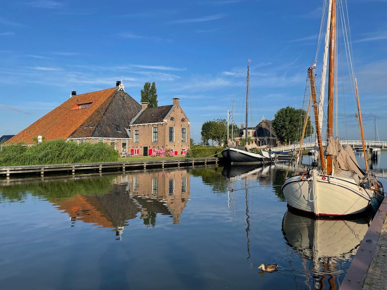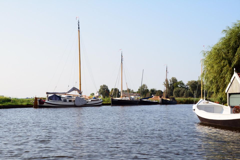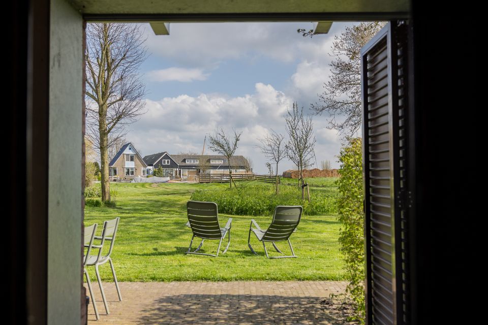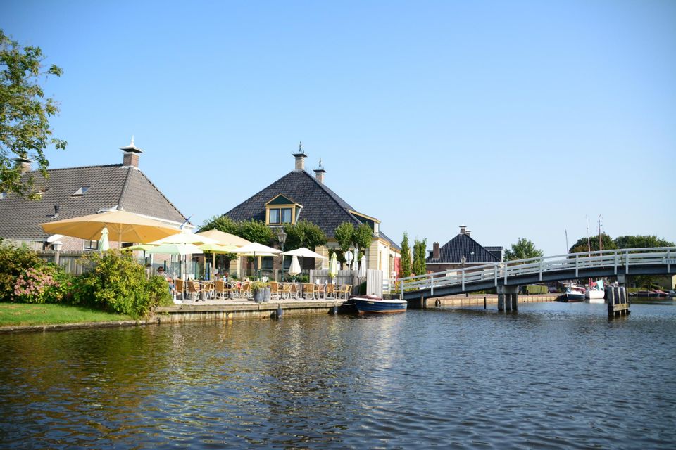 Gelegen aan het water met directe verbinding naar de Friese meren ligt dit ruimte appartement in een authentieke kop hals romp boerderij. Het appartement is geschikt voor 4 tot 5 personen. Op de begane grond bevinden zich een toilet, de woonkamer met tweepersoons bedstede en een open keuken. De keuken is onder andere voorzien van een keramische kookplaat, oven/magnetron, koelkast, Nespresso koffieapparaat en een vaatwasser. Via de openslaande deuren kom je op de loggia waar je in de ochtend kunt genieten van de opgaande zon en met regenachtig weer ook buiten kunt zitten. De loggia geeft toegang tot een eigen terras met een schitterend uitzicht op de tuin, het water en het landschap. Op de eerste verdieping bevinden zich 2 aan elkaar grenzende tweepersoons kamers met inbouwkasten. Via een overloop is er toegang tot de badkamer en een aparte toiletruimte. De slaapkamers stralen de sfeer van een boerderijkamer uit.
