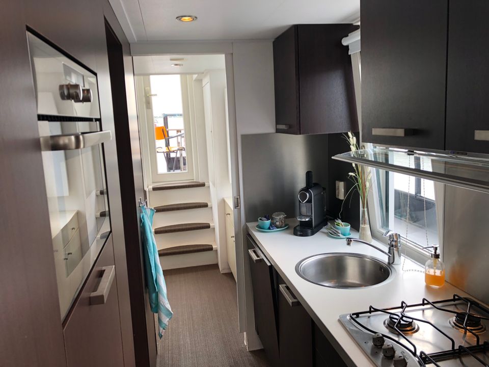 Wolkom oan board! De VaarHuizen zijn Nederlands bekendste professioneel varende Huisboten. Naast een riant voorterras aan dek is het VaarHuis voorzien van een vide, een extra bovenverdieping met maar liefst 6 slaapplaatsen. Eenmaal binnen zijn de gasten al snel onder de indruk van de ruimte, luxe en design. Naast een sfeervolle houtkachel is dit varende vakantiehuis voorzien van elektra 220V (zoals thuis) met een centrale verwarming, badkamer met toilet en douche en een complete keuken met vaatwasser, combi oven-magnetron en een Nespresso koffiemachine. Bekijk de plattegronden en foto's voor een goede indruk aan boord.